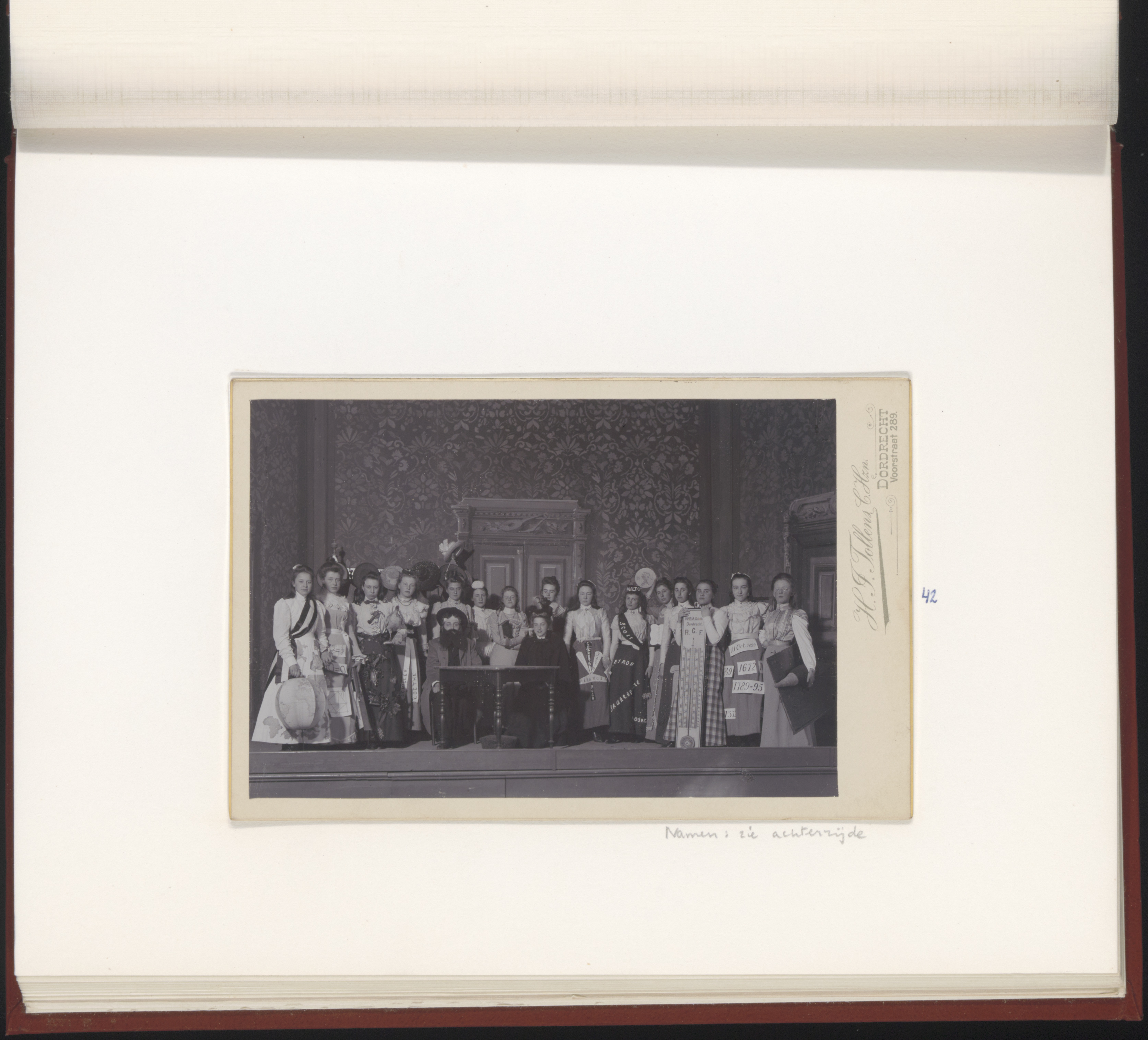 Toneeluitvoering door leerlingen van de Middelbare Meisjesschool in het Steegoversloot.