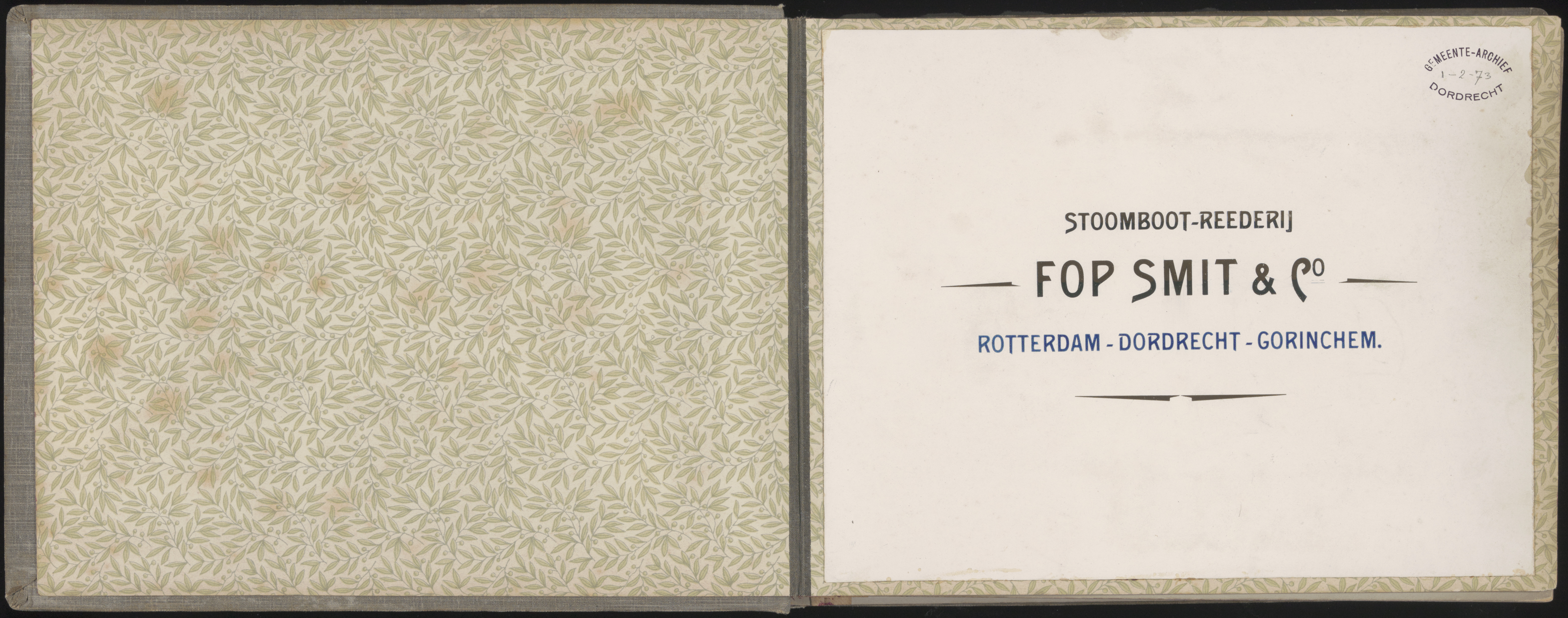 - Titelblad van album voor de heer J.G. van Peere bij het verlaten van zijn ruim 40-jarige dienst als conducteur bij Stoomboot-reederij Fop Smit & co., Rotterdam - Dordrecht - Gorinchem, aangeboden door het personeel.