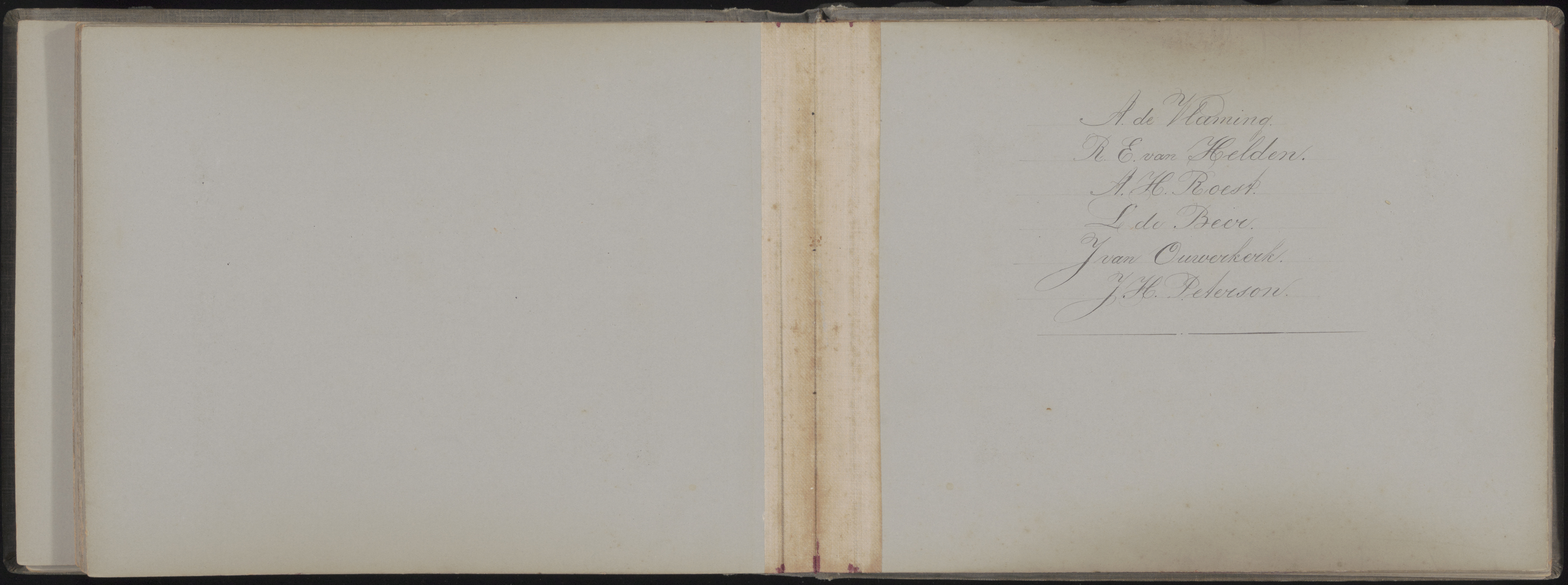 Namen van collega's in het fotoalbum voor de heer J.G. van Peere bij het verlaten van …