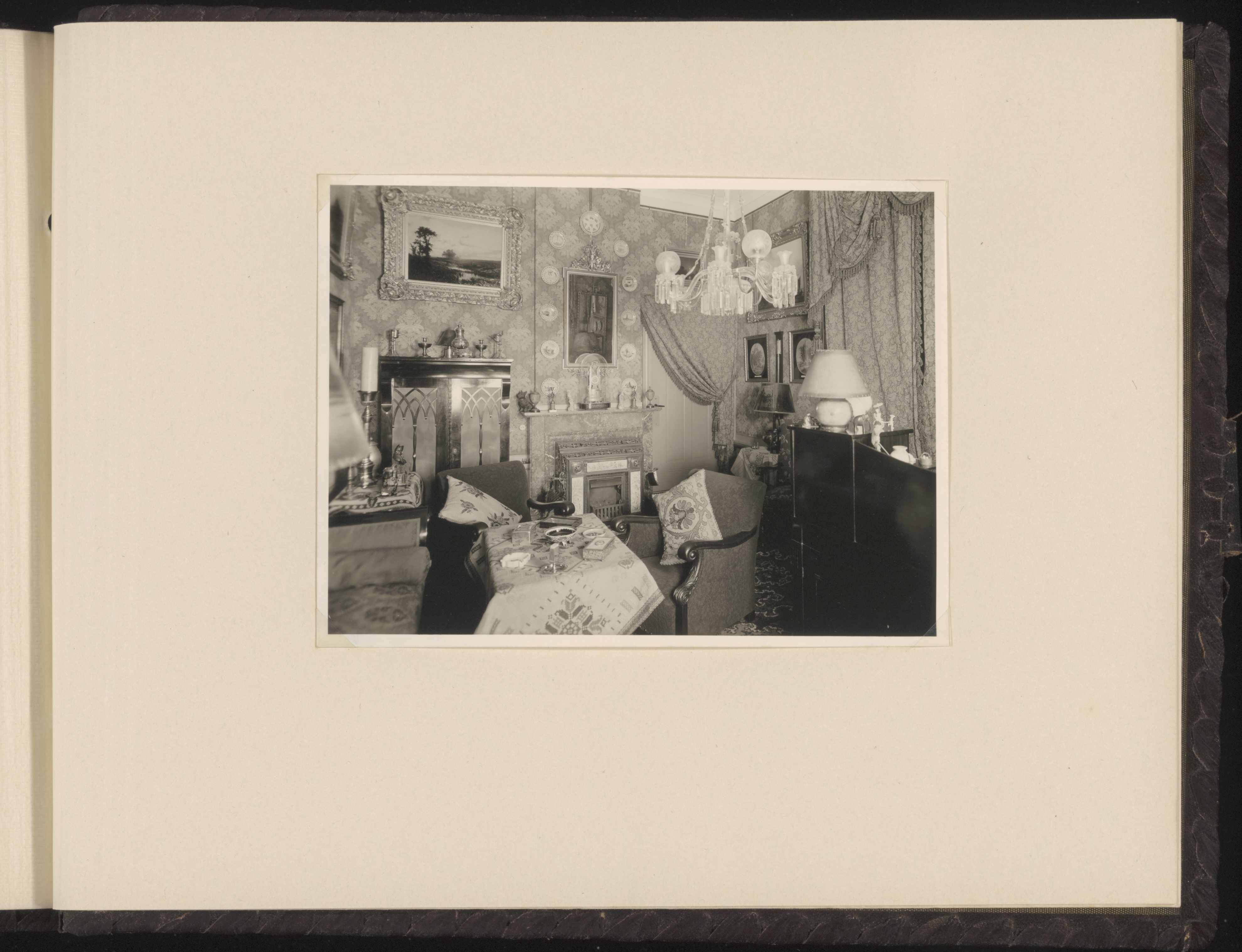 - haarden / (gas)kachels interieurs kastelen kroonluchters meubels schoorsteenmantels / schouwen tapijten / wandkleden