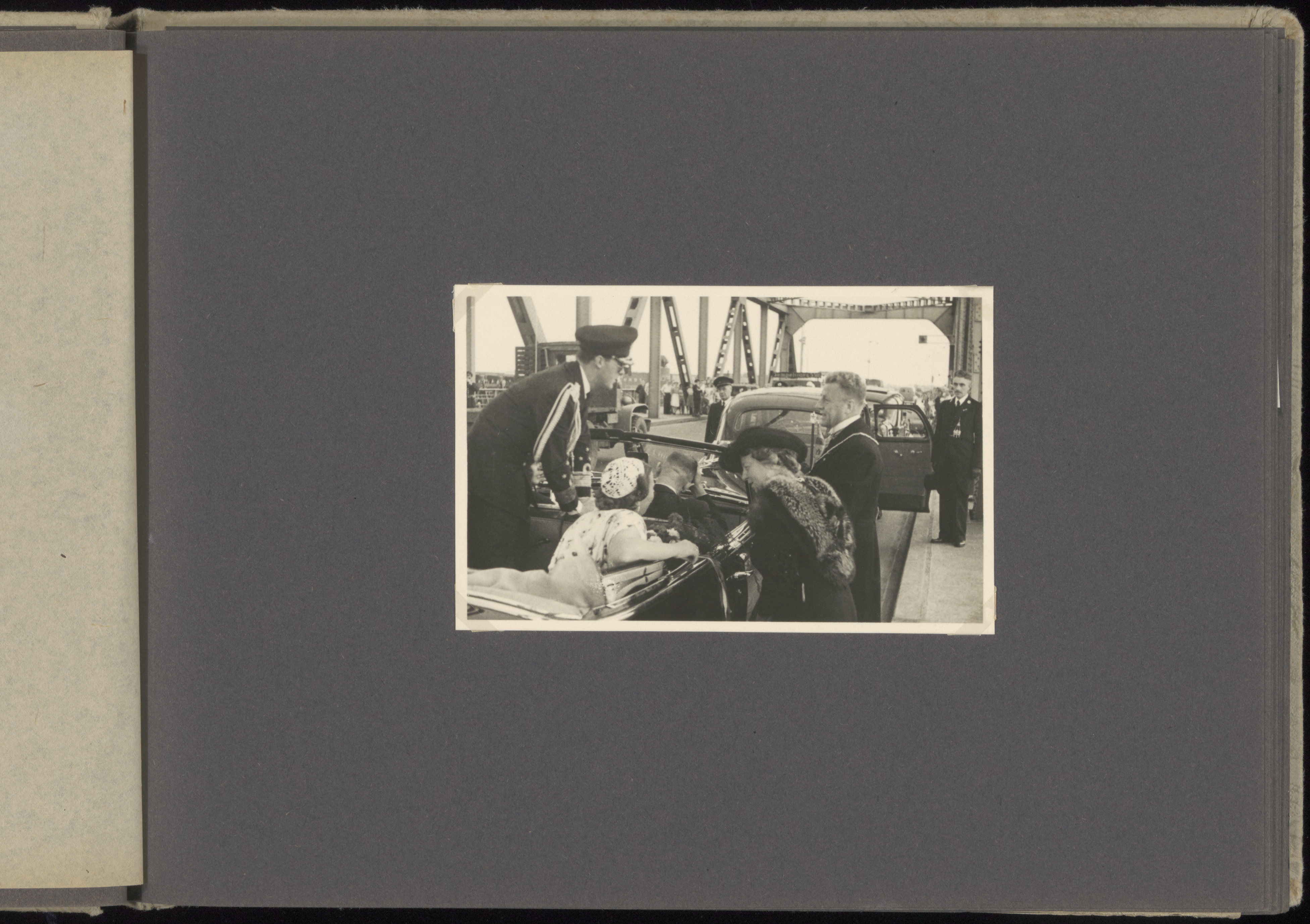 - Burgemeester Bleeker en zijn vrouw verwelkomen H.H.K.K.H.H. prinses Juliana en prins Bernhard op de Zwijndrechtse Brug voor een bezoek aan de Hoffeesten die van 14 t/m 19 juli 1947 gehouden werden t.g.v. de 375e herdenking van de Eerste Vrije Statenverkiezing in 1572.