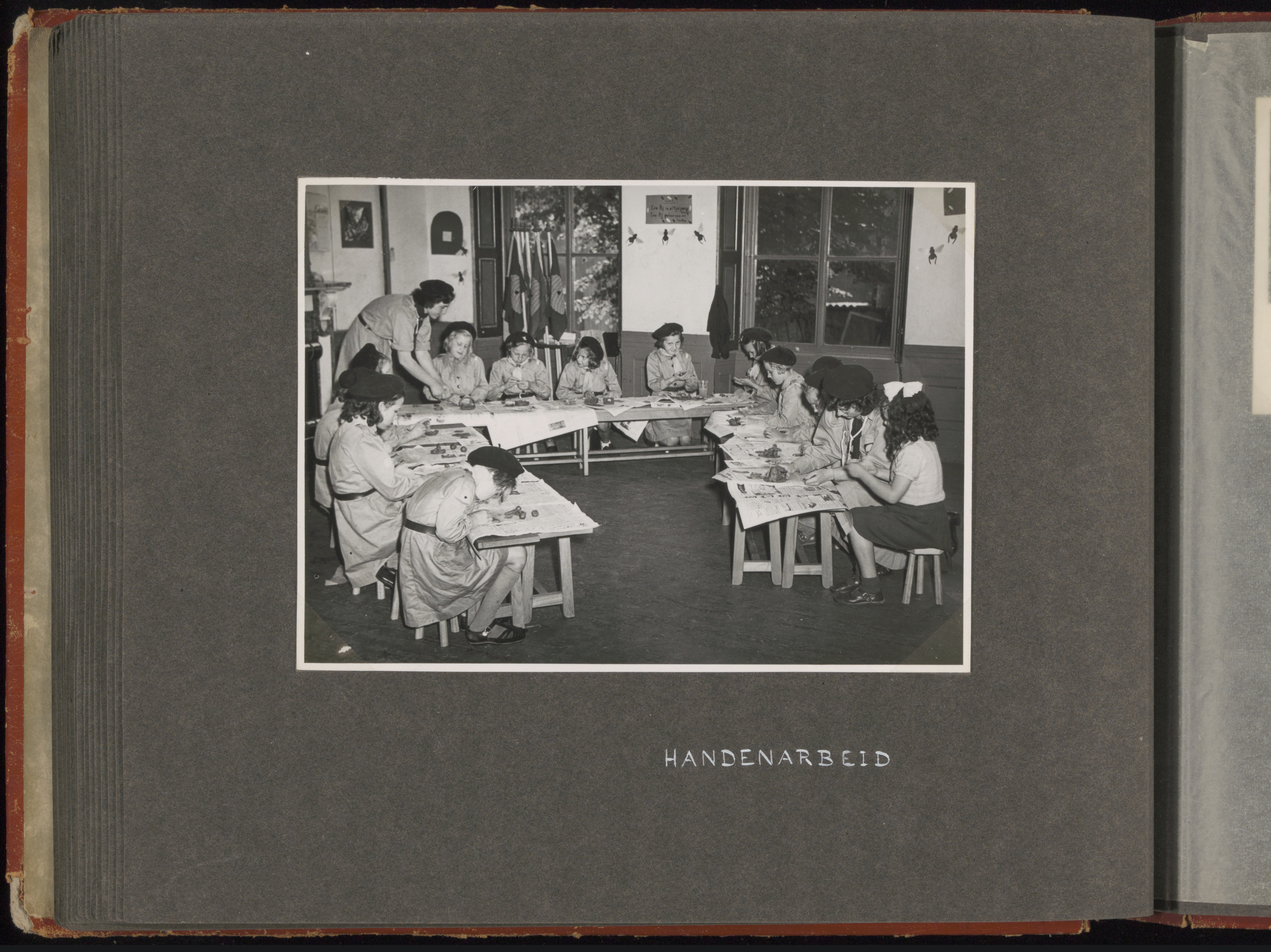 Handenarbeid in het gebouw van de RK jeugdorganisatie Jeugdstad in de Wijnstraat.