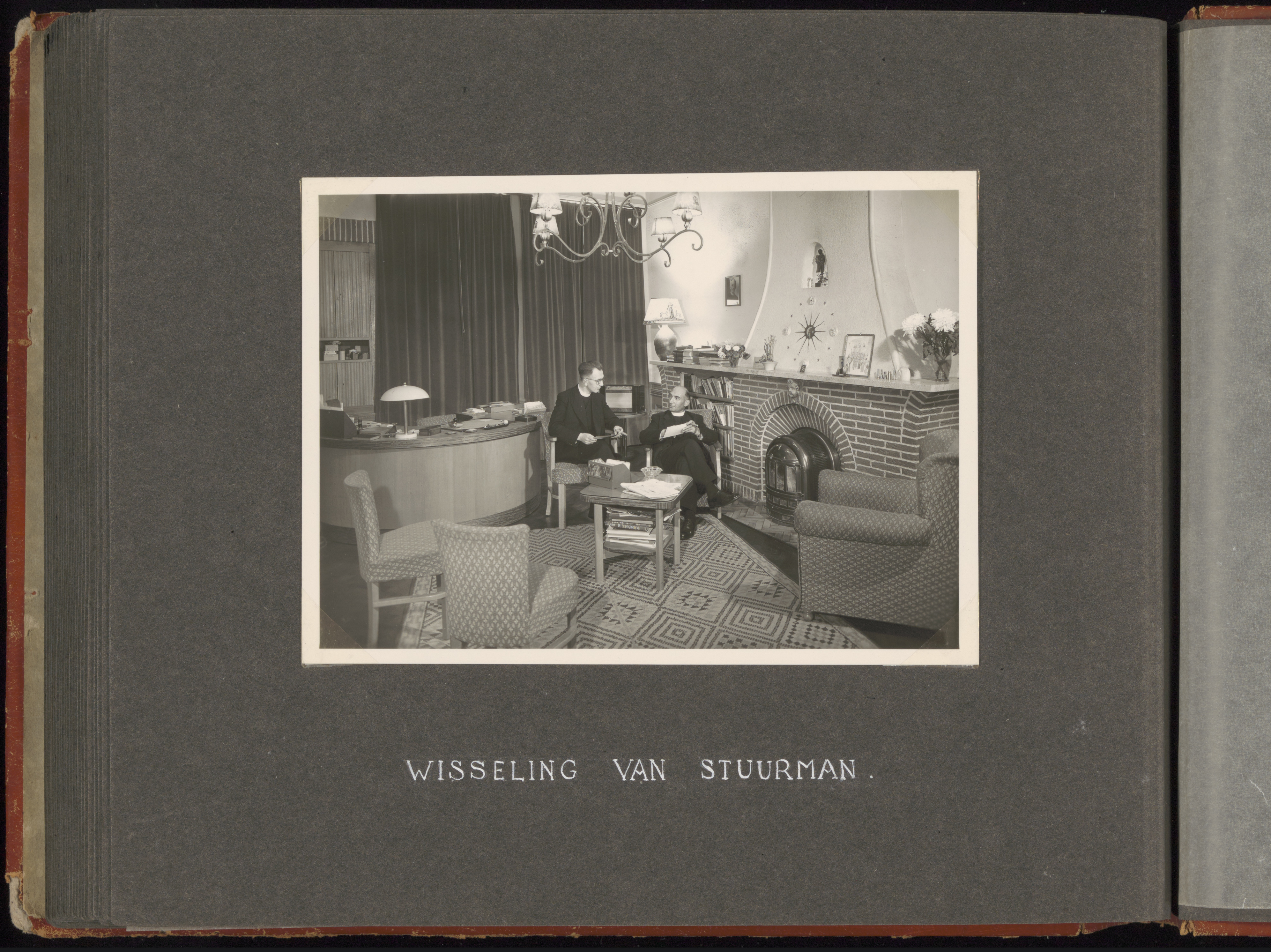 Gaande en komende leider van de RK jeugdorganisatie Jeugdstad in de Wijnstraat.