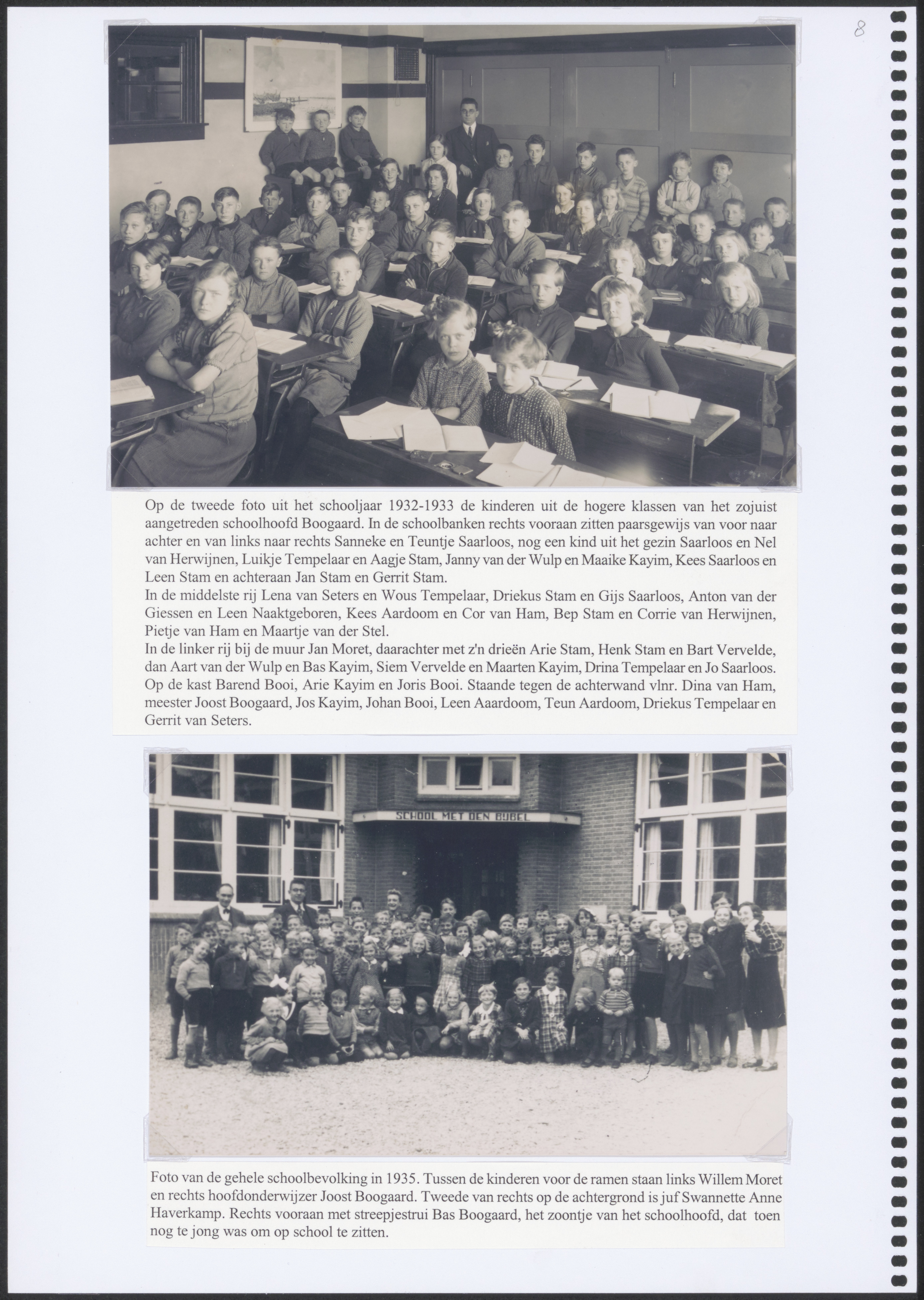 - Boven: Leerlingen uit de hogere klassen van de Christelijke school Tweede Tol aan de Rijksstraatweg. Onder: De gehele schoolbevolking in 1935.