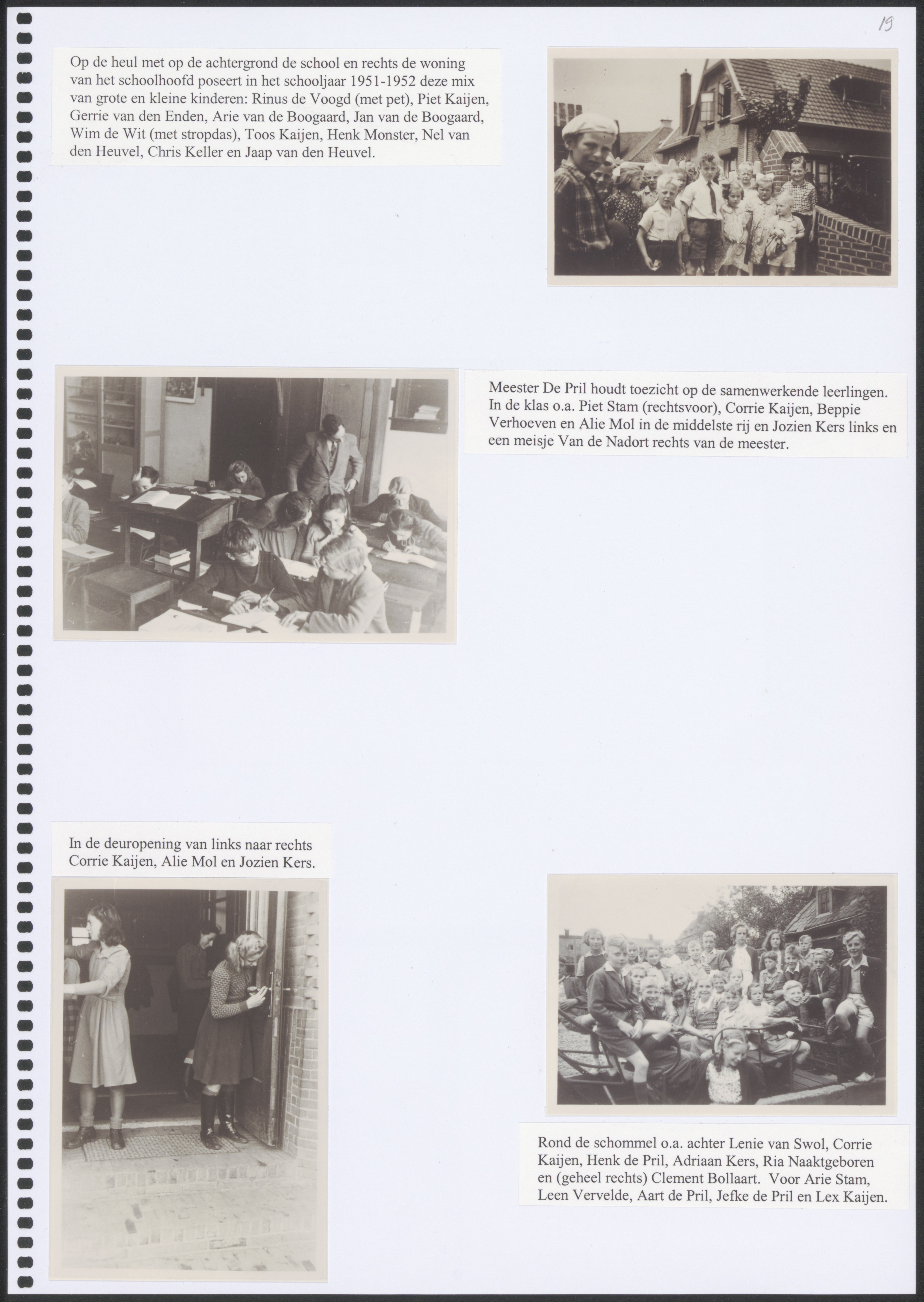 - Boven: Leerlingen van de christelijke school Tweede Tol aan de Rijksstraatweg op de toegangsbrug. Midden: Meester De Pril in een klas met leerlingen. Linksonder: Leerlingen bij de hoofdingang van de school. Rechtsonder: Groep leerlingen bij de schommel.