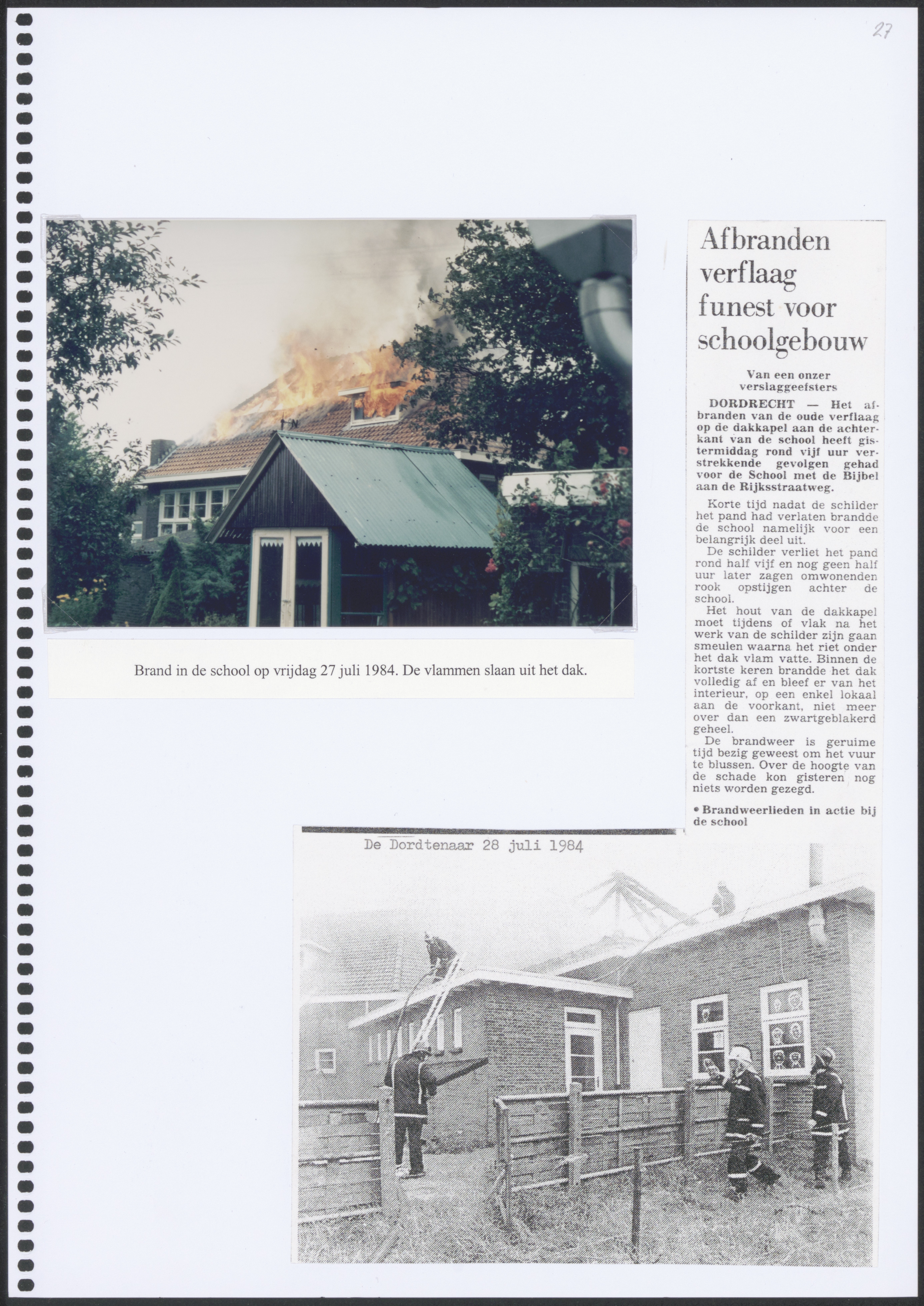 - Brand in de christelijke school Tweede Tol aan de Rijksstraatweg op vrijdag 27 juli 1984.