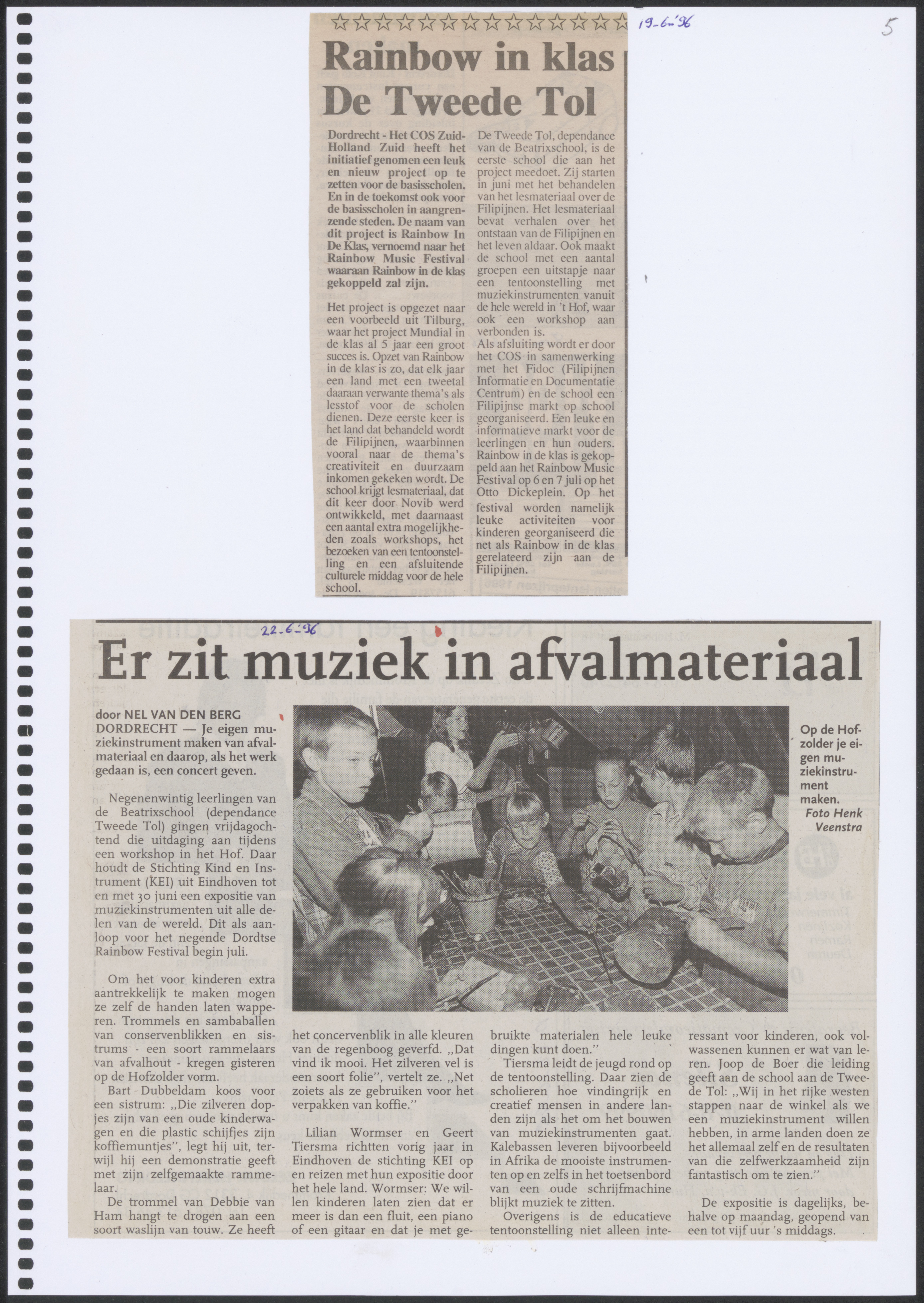 Krantenartikelen over buitenschoolse activiteiten van de christelijke school Tweede Tol aan de Rijksstraatweg.