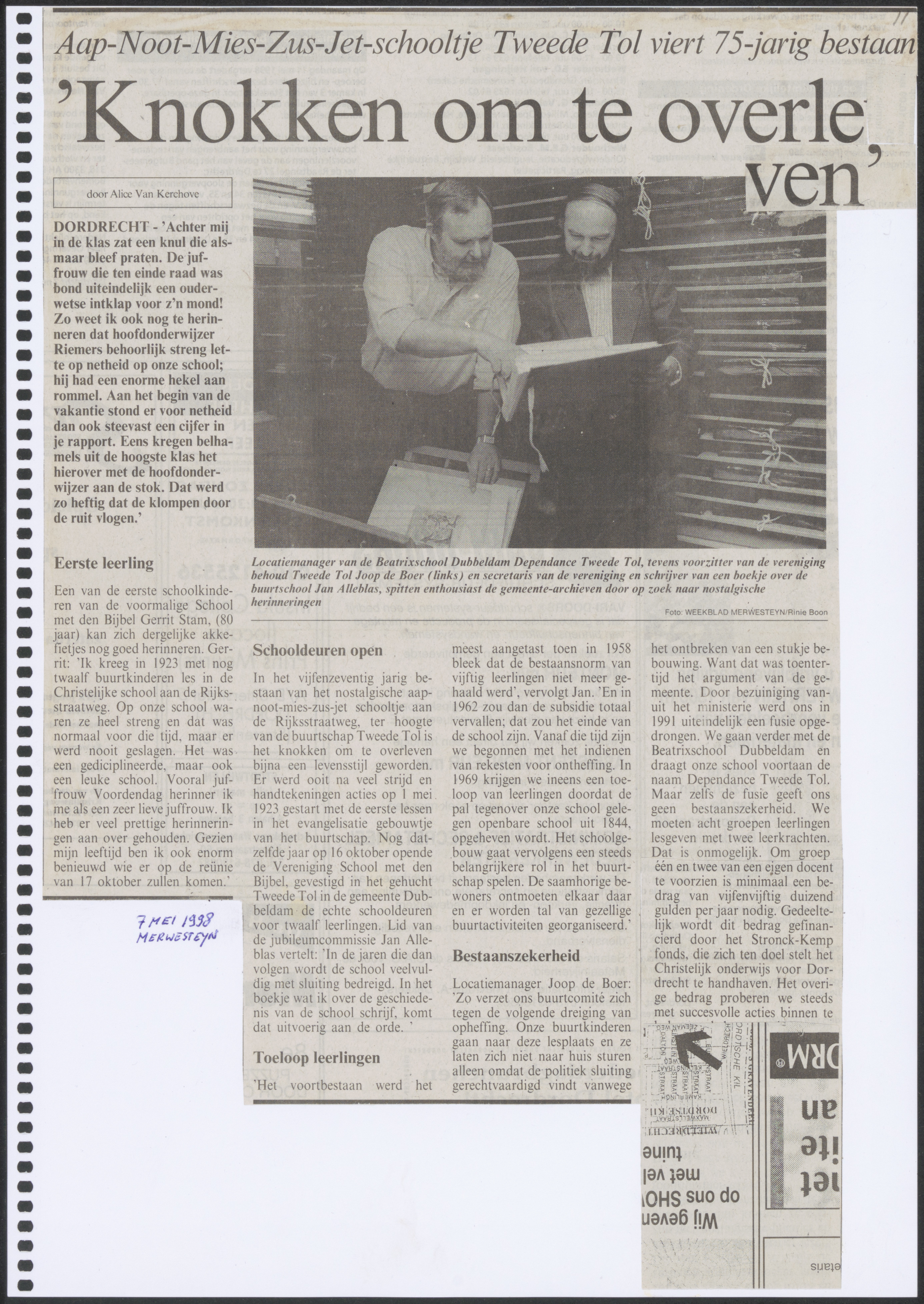 - Krantenartikel over het 75-jarig bestaan van de christelijke school Tweede Tol aan de Rijksstraatweg.