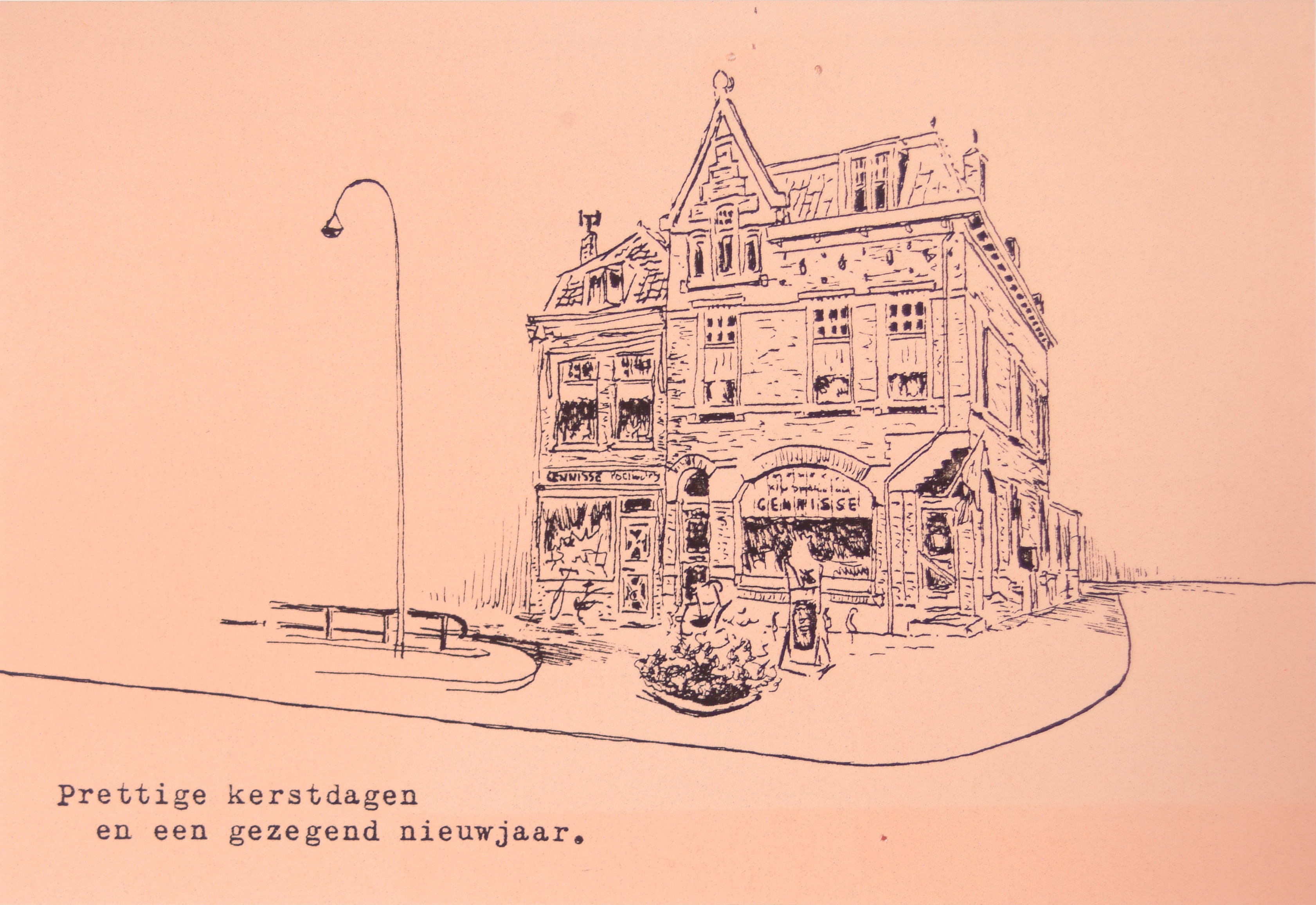 - Winkelpand van poelier Gennisse op een adreswijziging van de zaak van de Torenstraat naar de Reeweg Oost, hoek Riouwstraat.