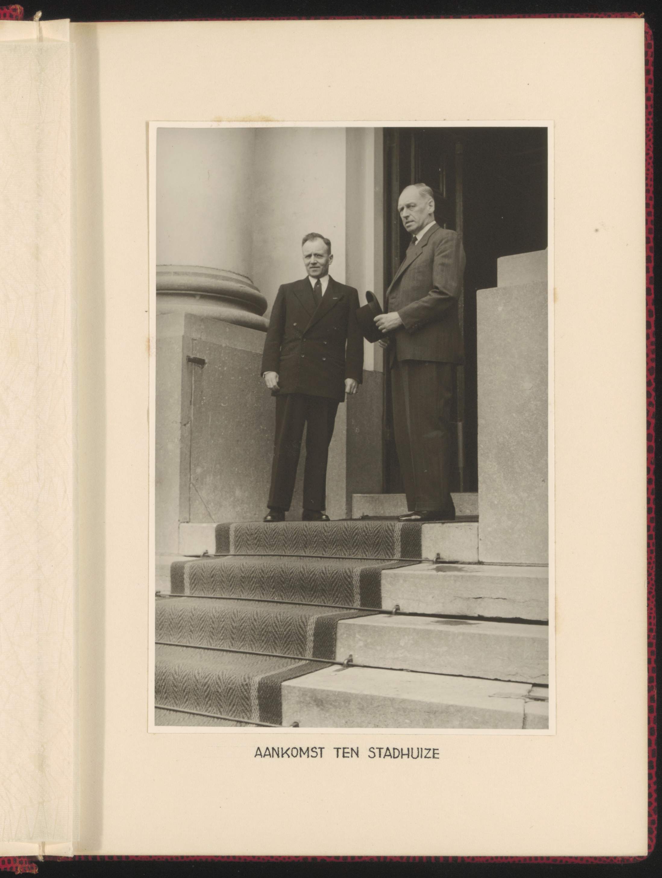 Ontvangst op het stadhuis door burgemeester Van der Dussen van Mr L.A. Kesper, …