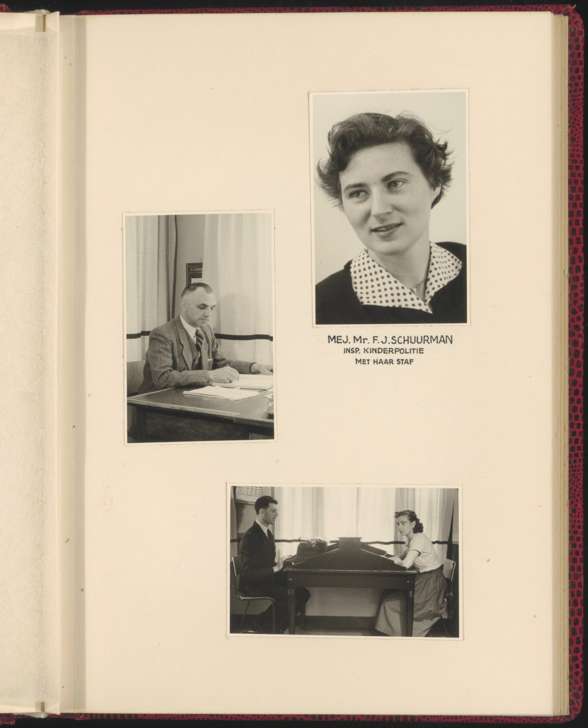 Teamleden van mej. Mr. F.J. Schuurman, inspecteur kinderpolitie. Onderste foto zit …