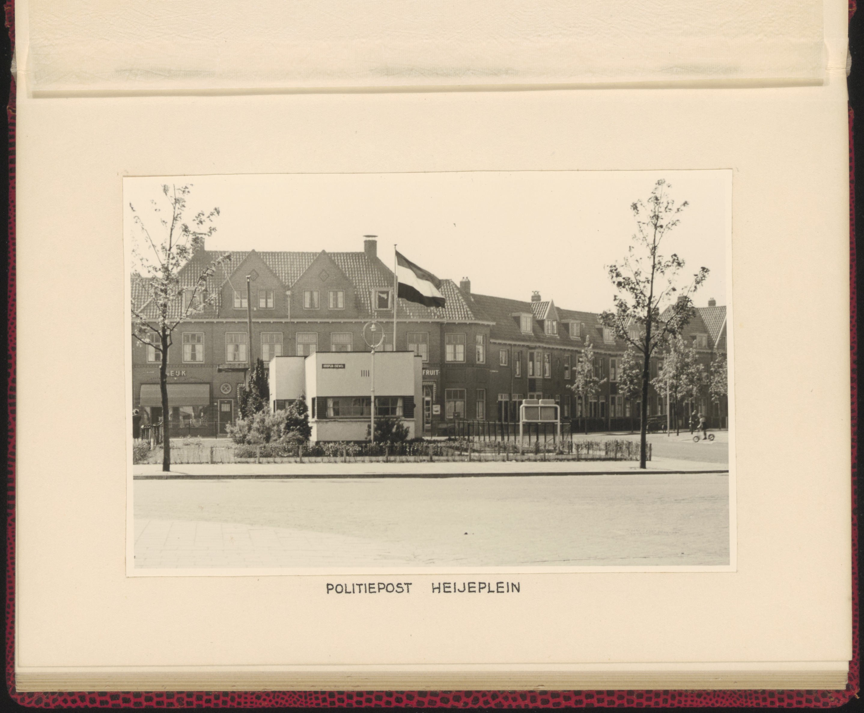 - Politiepost op het Heijeplein, gezien vanaf de Krispijnseweg. Rechts de Goeverneurstraat.