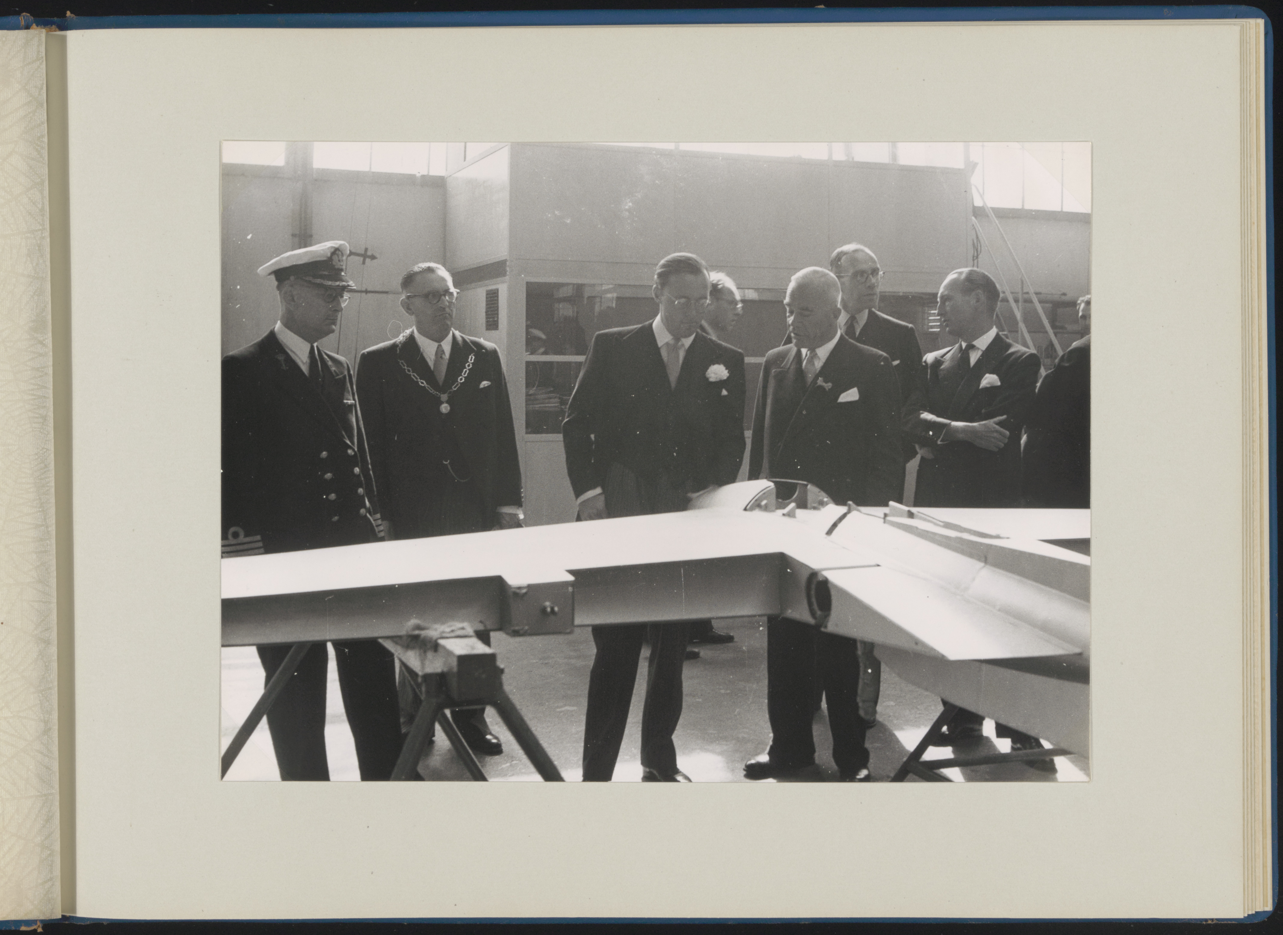 - ambtsketens burgemeesters fabriekshallen koninklijke bezoeken militairen / soldaten vliegtuigbouw