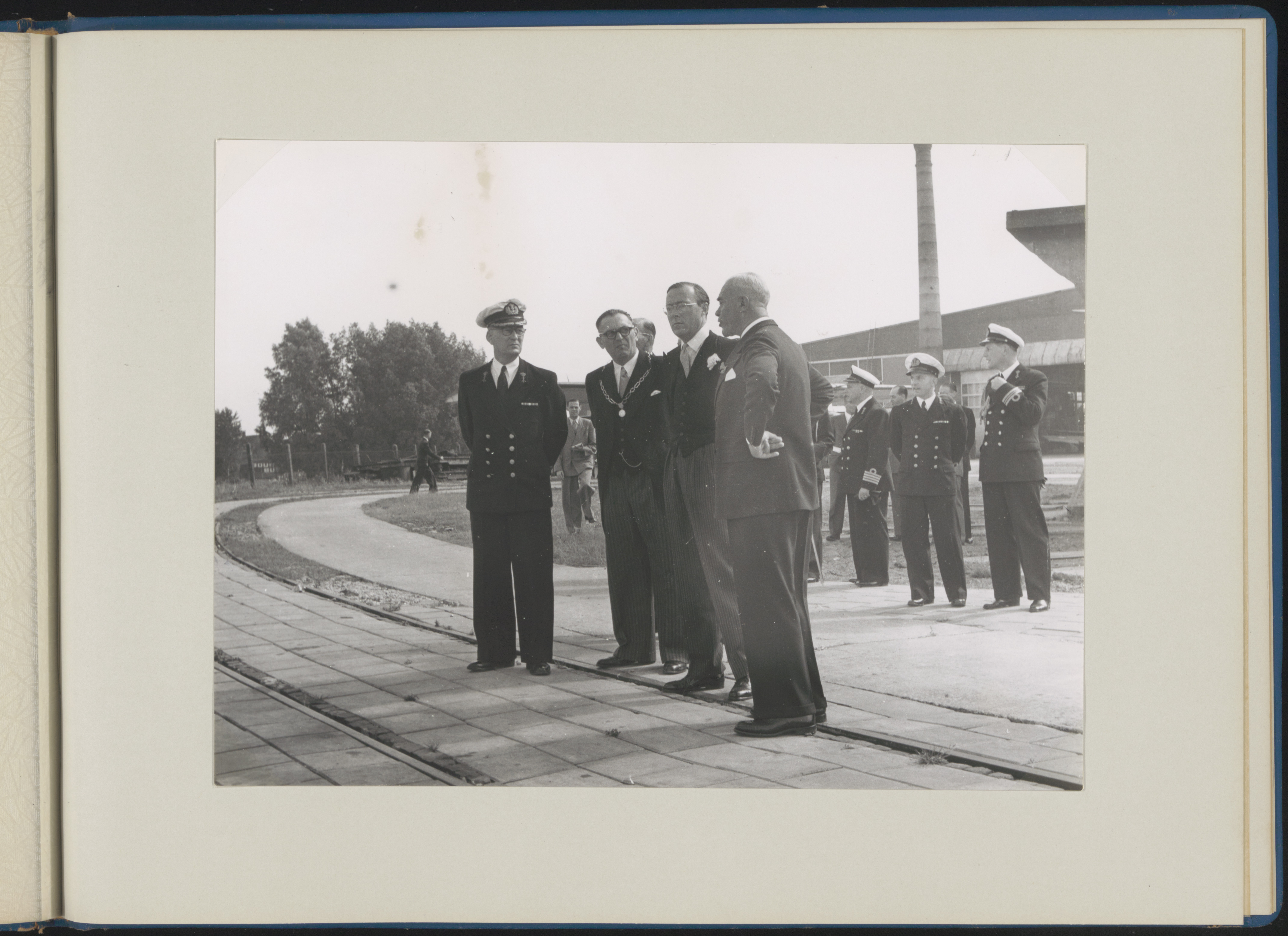 - burgemeesters fabrieken koninklijke bezoeken militairen / soldaten spoorrails