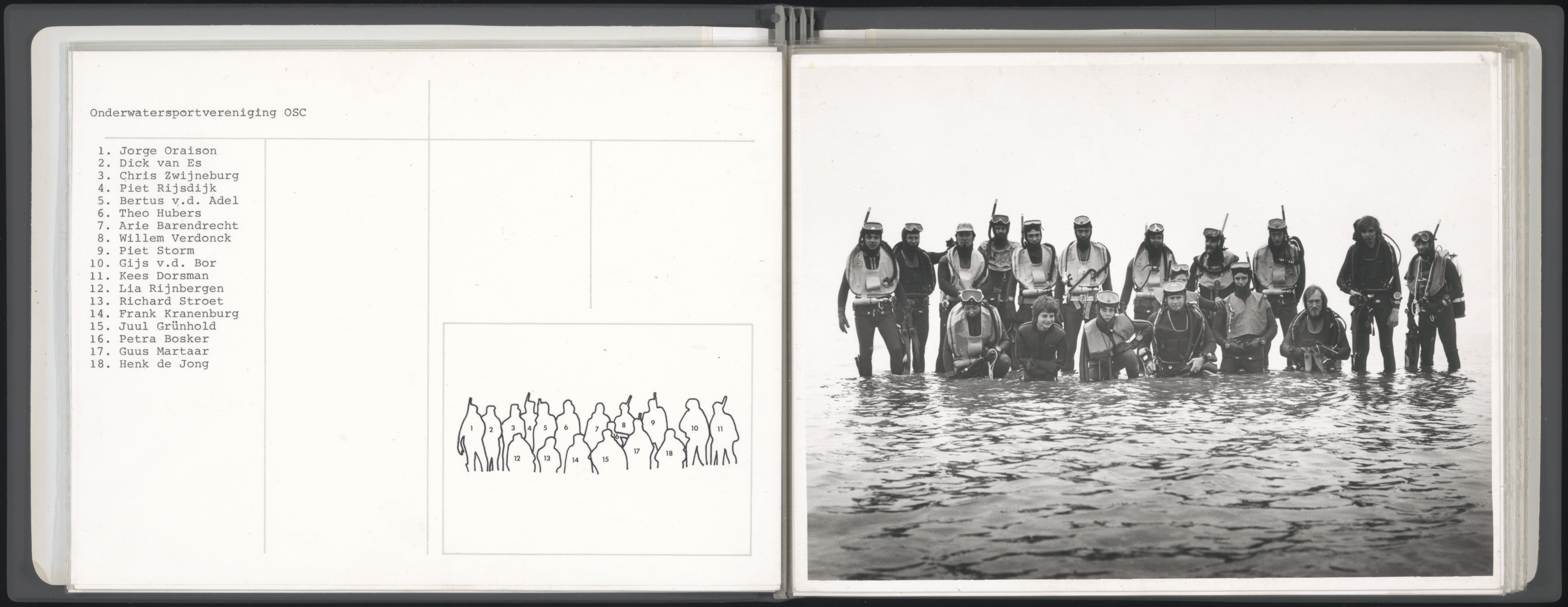 - Leden van Onderwater Sport Club Dordrecht (OSCD). 1. Jorge Oraison, 2. Dick van Es,3. Chris Zwijneburg, 4. Piet Rijsdijk, 5. Bertus v.d. Adel, 6. Theo Hubers, 7. Arie Barendrecht, 8. Willem Verdonck, 9. Piet Storm, 10. Gijs v.d. Bor, 11. Kees Dorsman, 12. Lia Rijnbergen, 13. Richard Stroet, 14. Frank Kranenburg, 15. Juul Grünhold, 16. Petra Bosker, 17. Guus Martaar, 18.Henk de Jong.
