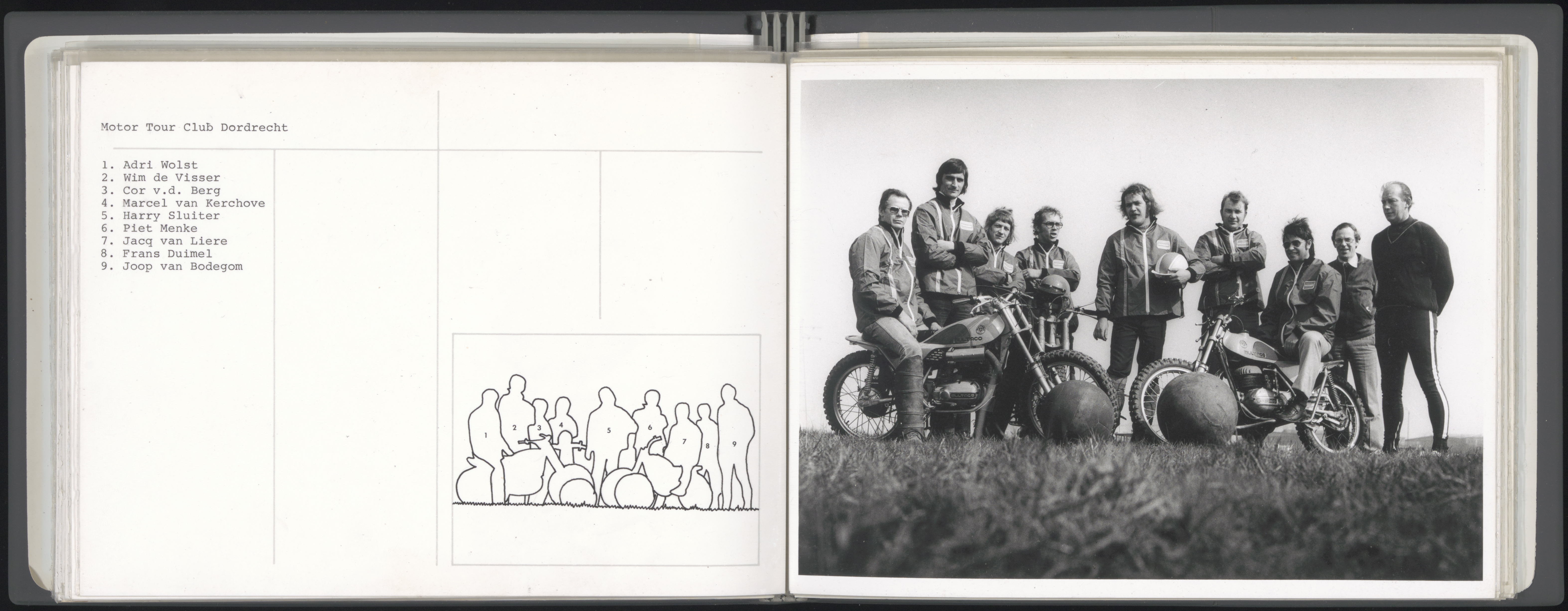 - Leden van Motor Tour Club Dordrecht. 1. Adri Wolst, 2. Wim de Visser, 3. Cor v.d. Berg, 4. Marcel van Kerchove, 5. Harry Sluiter, 6. Piet Menke, 7. Jacq van Liere, 8. Frans Duimel, 9. Joop van Bodegom.
