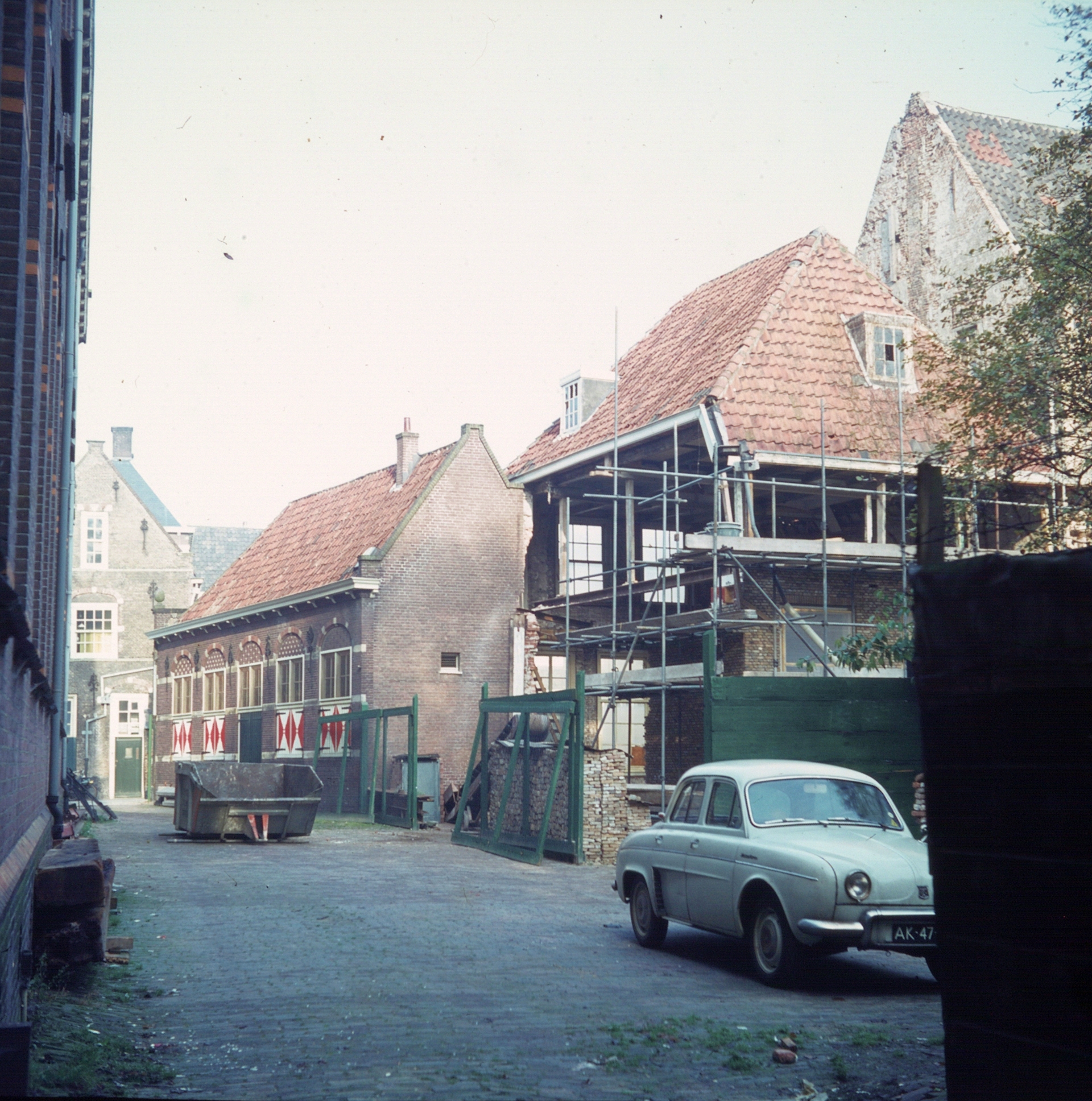 De restauratie-werkzaamheden bij het Hof, gezien vanaf de Kloostertuin.