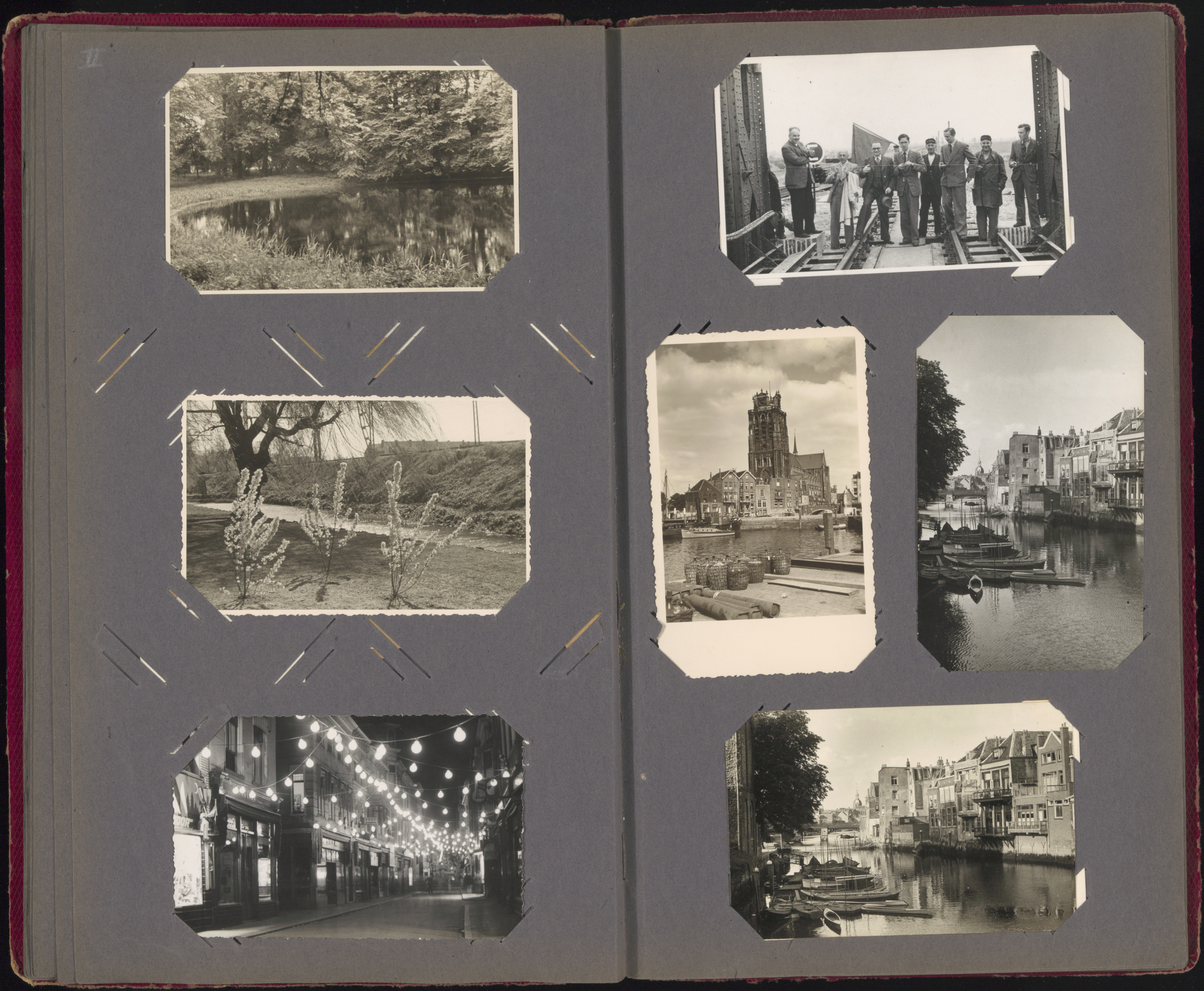 [fotoalbum Piet Kuiters] park, Grote Kerk, feestverlichting winkelstraat, Voorstraatshaven