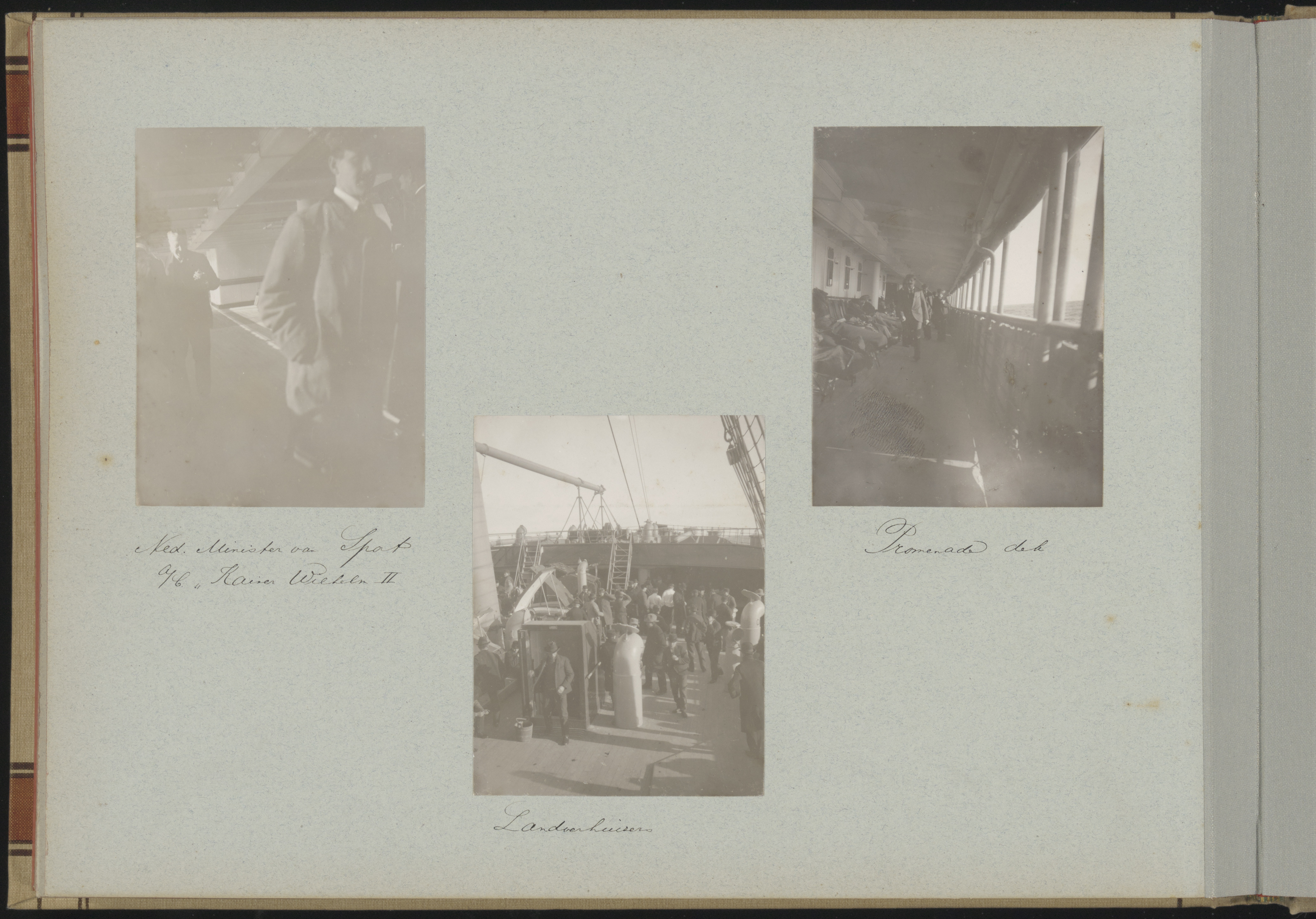 Midden: Landverhuizers/Emigranten. Rechts: Promenadedek