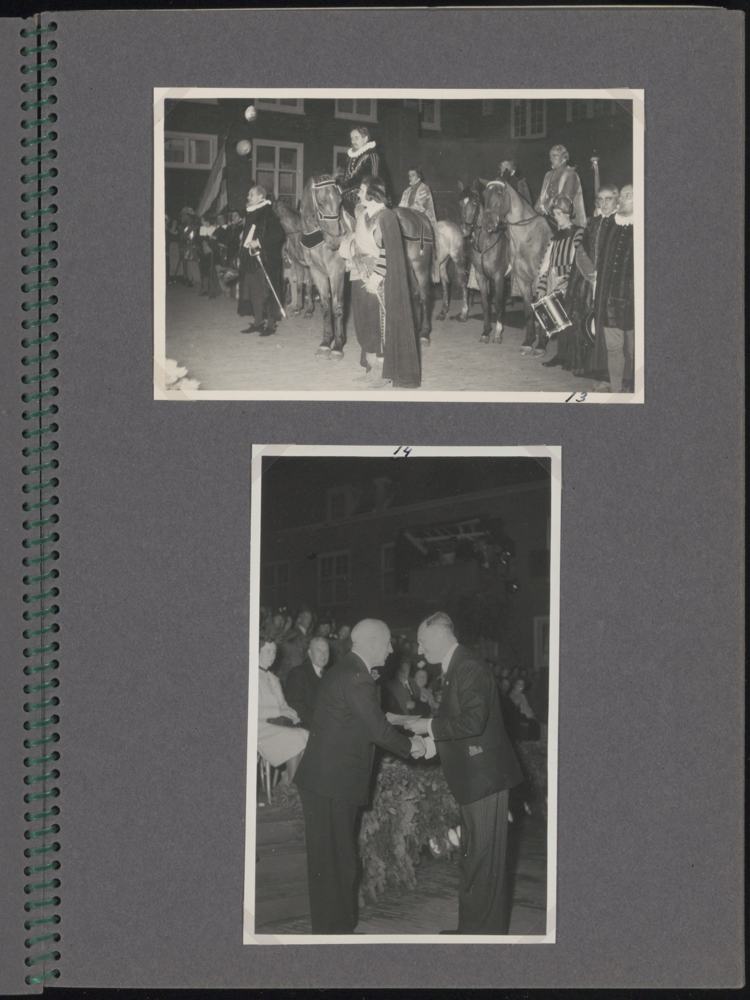 Boven: Openluchtspel "Voor vaderland ende vrijheidt" door J. van Randwijk in het Hof …