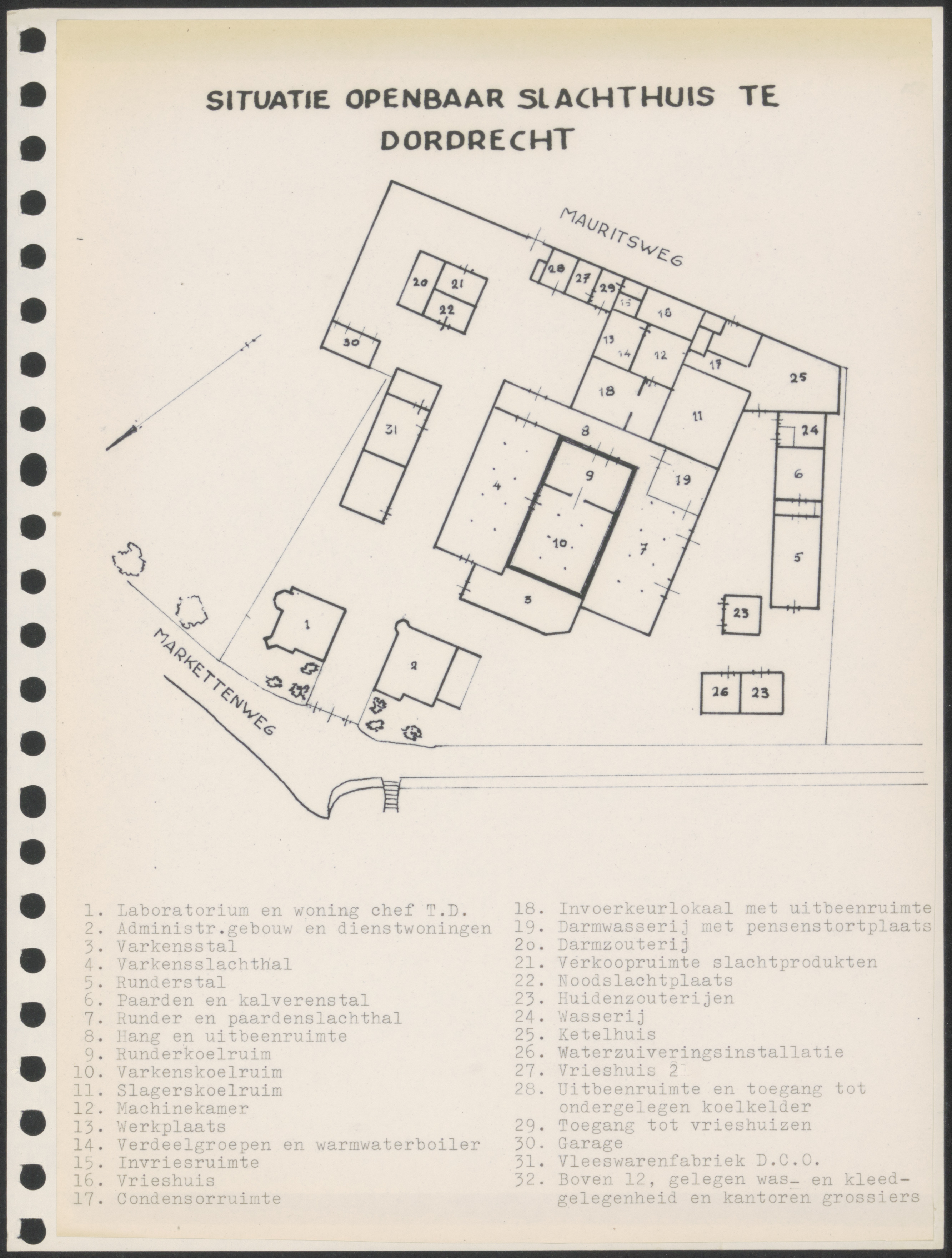 - Plattegrond van het Gemeentelijk Slachthuis tussen de Markettenweg en de Mauritsweg.
