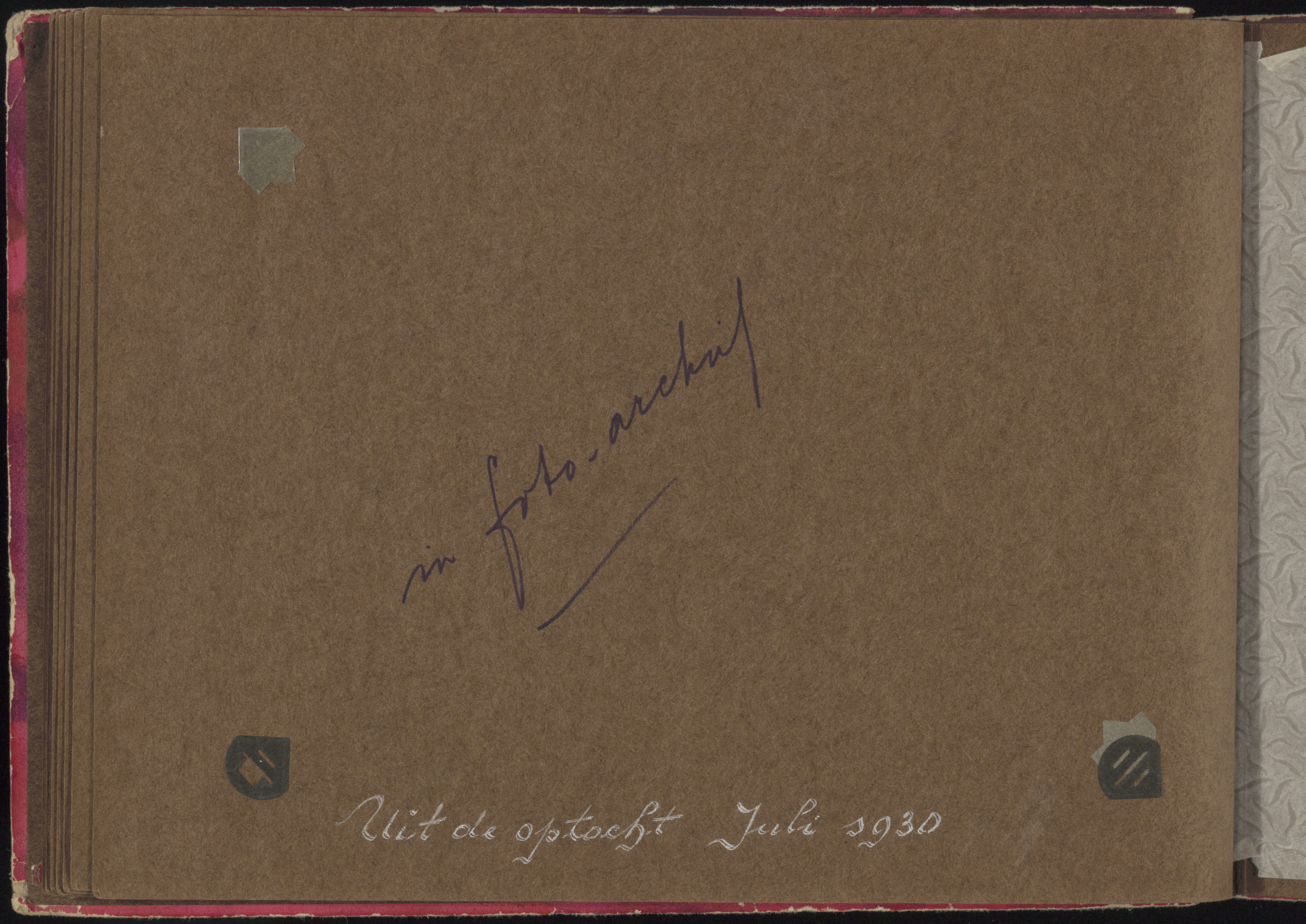 - Bladzij zonder foto's in album van gymnastiekvereniging OKK. Bijschrift: Uit de optocht, juli 1930.