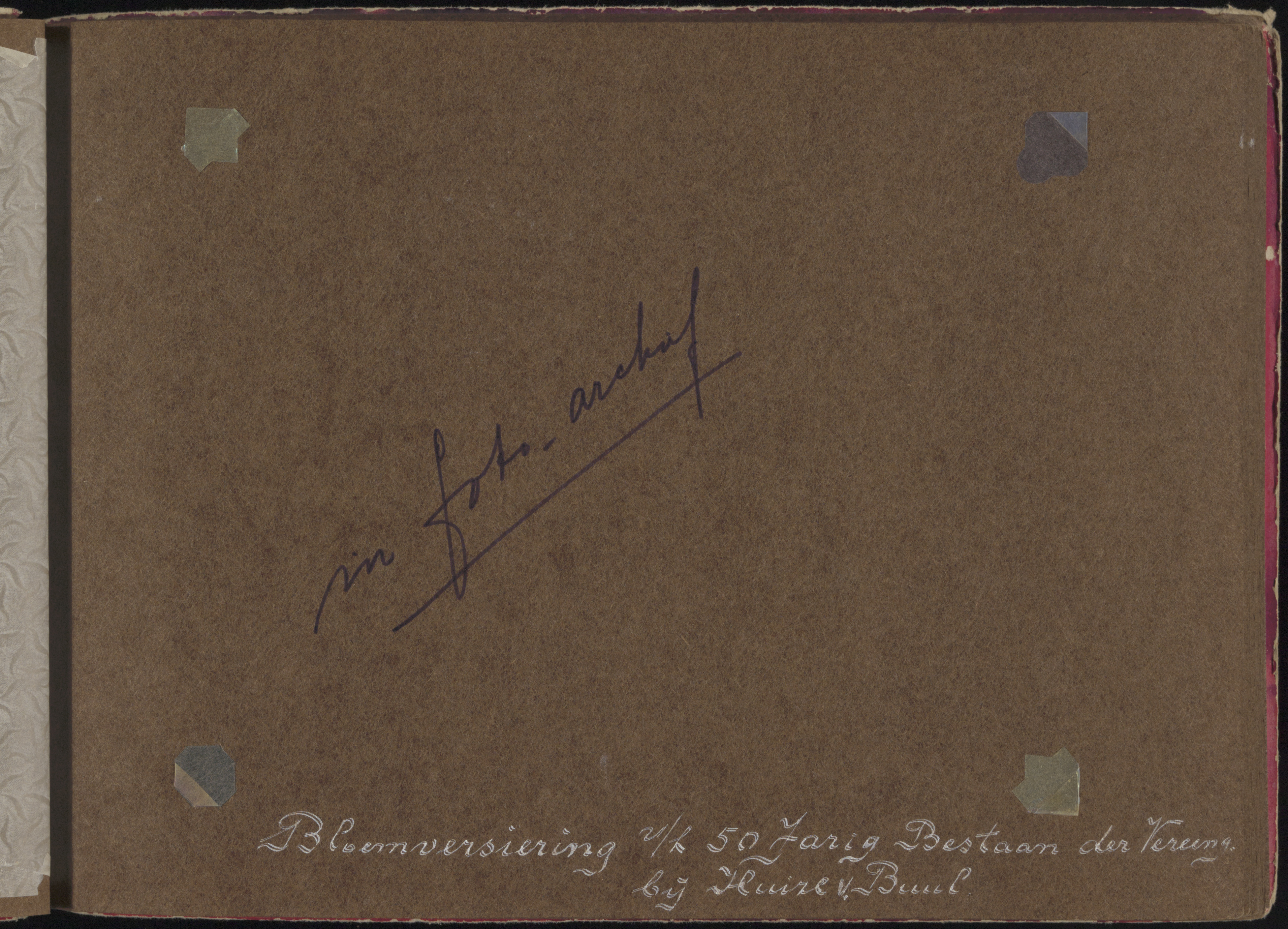 - Bladzij zonder foto's in album van gymnastiekvereniging OKK. Bijschrift: Bloemversiering v/h 50-jarig bestaan der vereniging bij huize v. Buul.