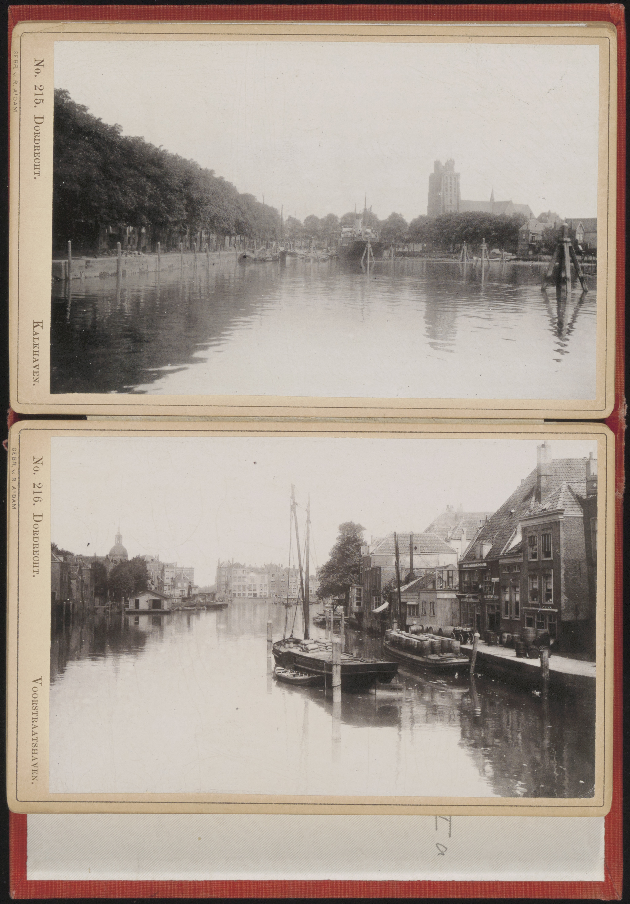 - Boven: De Binnen Kalkhaven (links) langs de Kalkhaven in de richting van de Grote Kerk. Onder::De Wijnhaven tussen Wijnstraat (links) en Taankade.