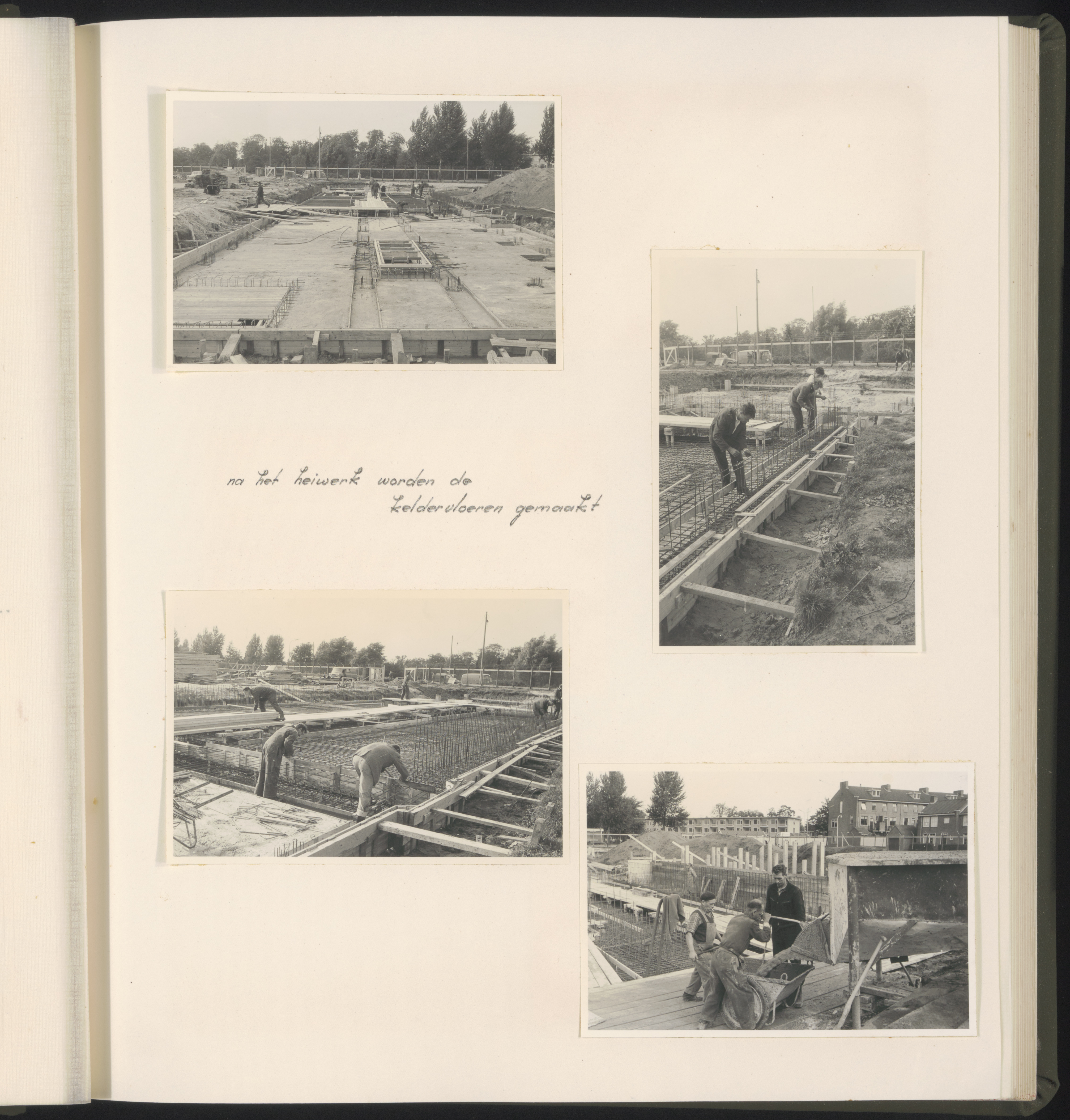 Het leggen van de fundering van het politiebureau op de hoek Nassauweg/Mauritsweg.