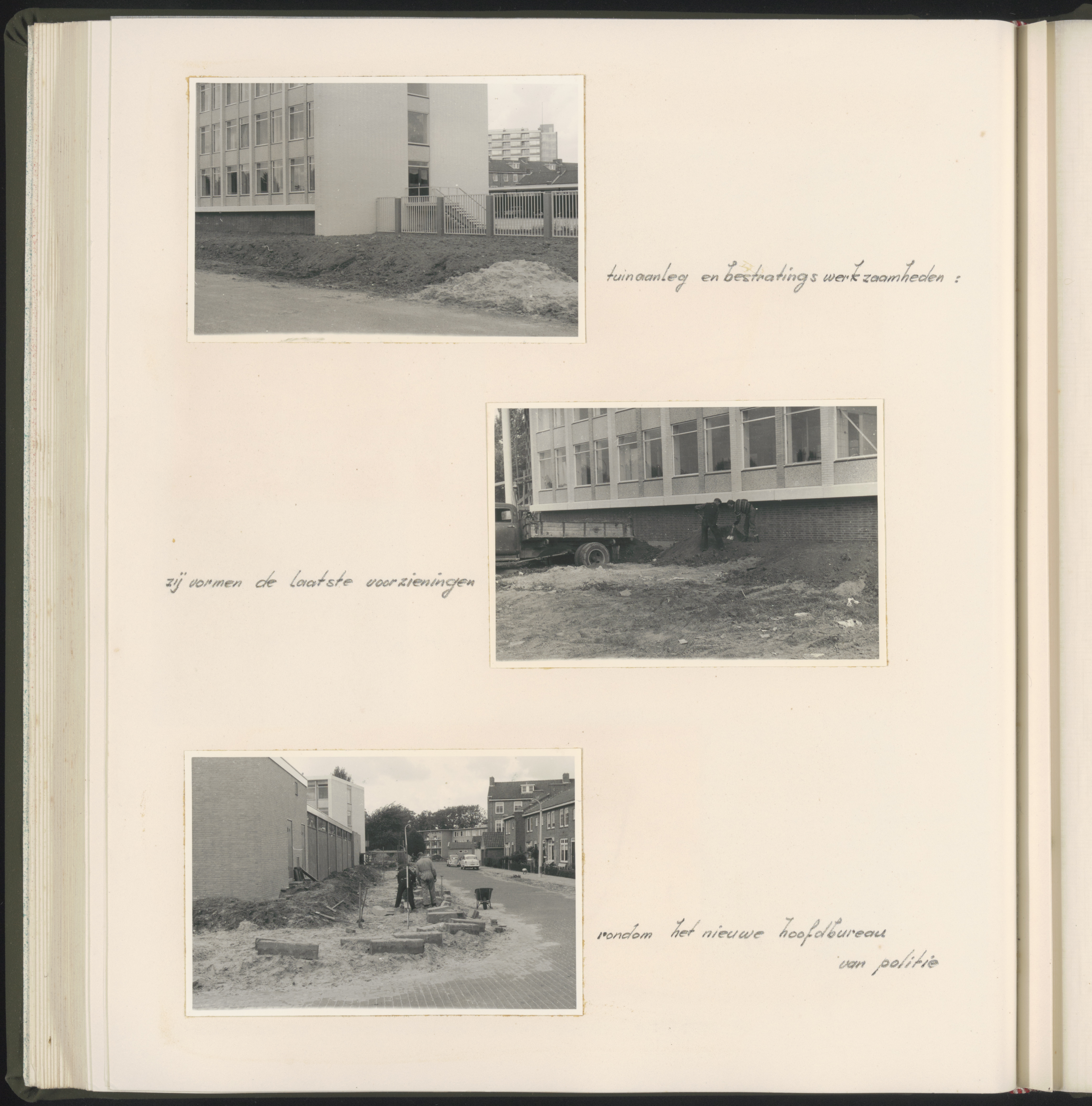 - Aanleg van tuin en bestrating rondom het nieuw gebouwde politiebureau op de hoek Nassauweg/Mauritsweg. Onder: de Johan Willem Frisostraat.