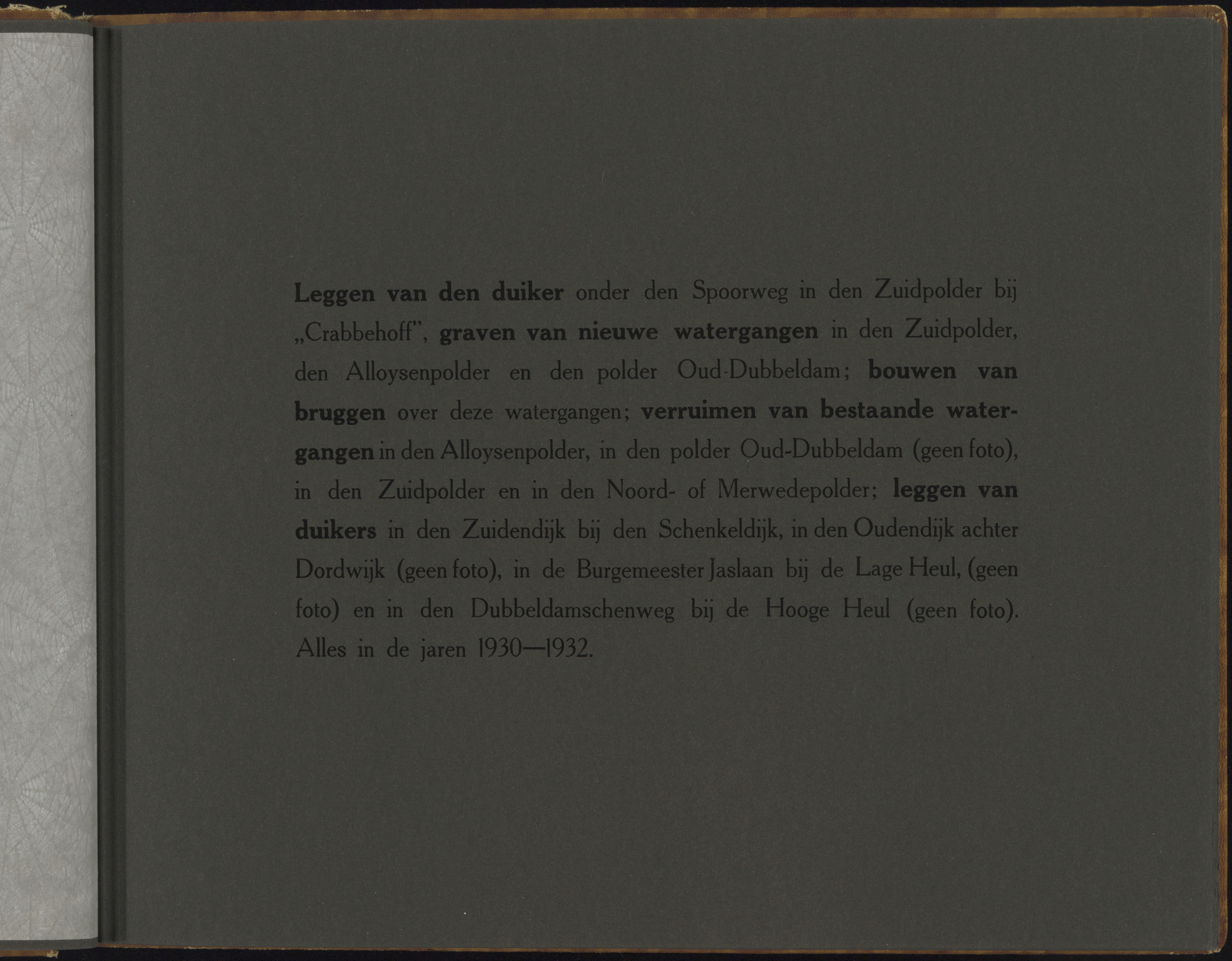 - Tekstblad in het album over de bouw van waterwerken nabij de Kop van 't Land door waterschap Waterschap De Vier Polders.