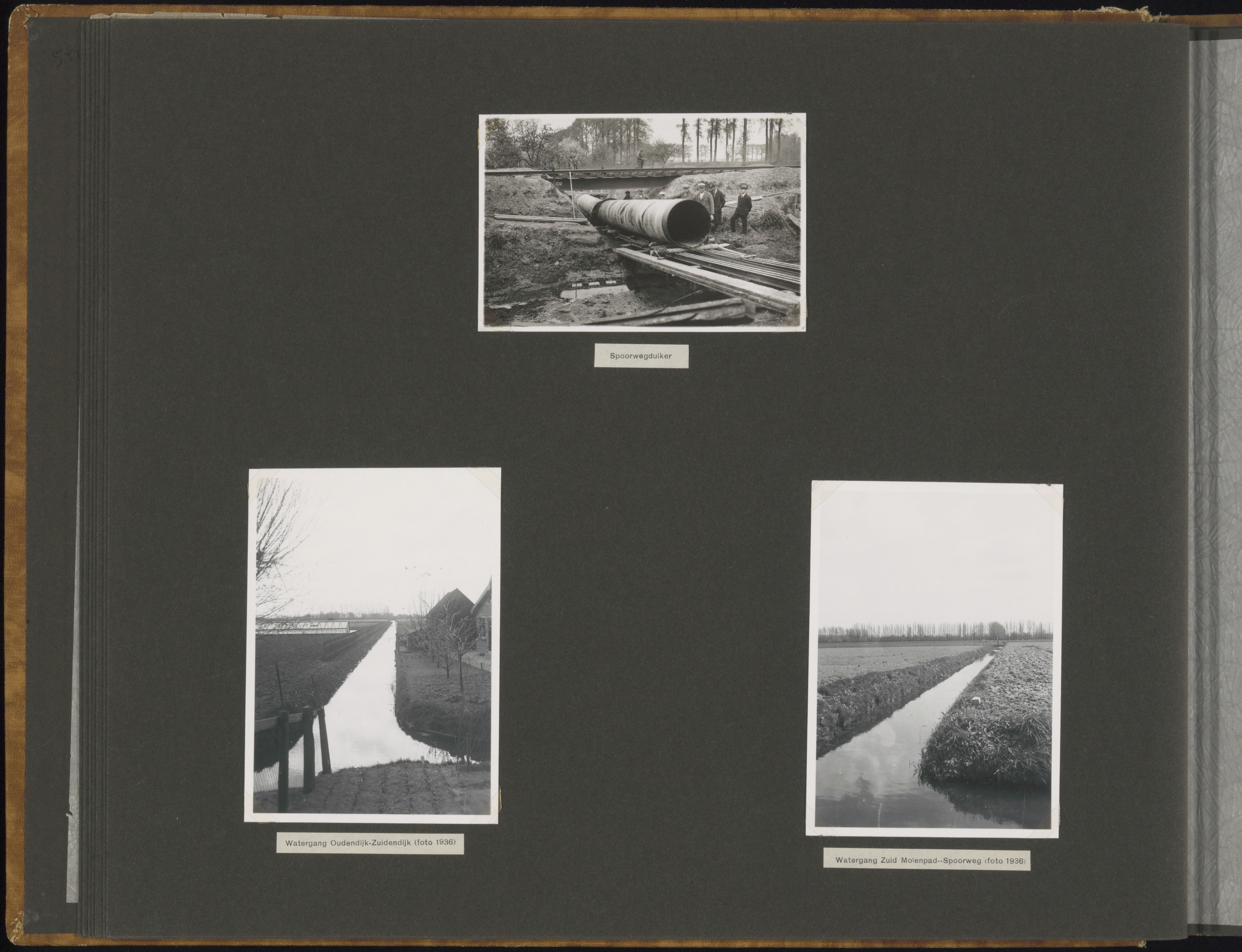 - Boven: Aanleg van een duiker onder de spoorbaan naar Sliedrecht. Onder: Watergangen in het oostelijk gebied van het Eiland van Dordrecht.