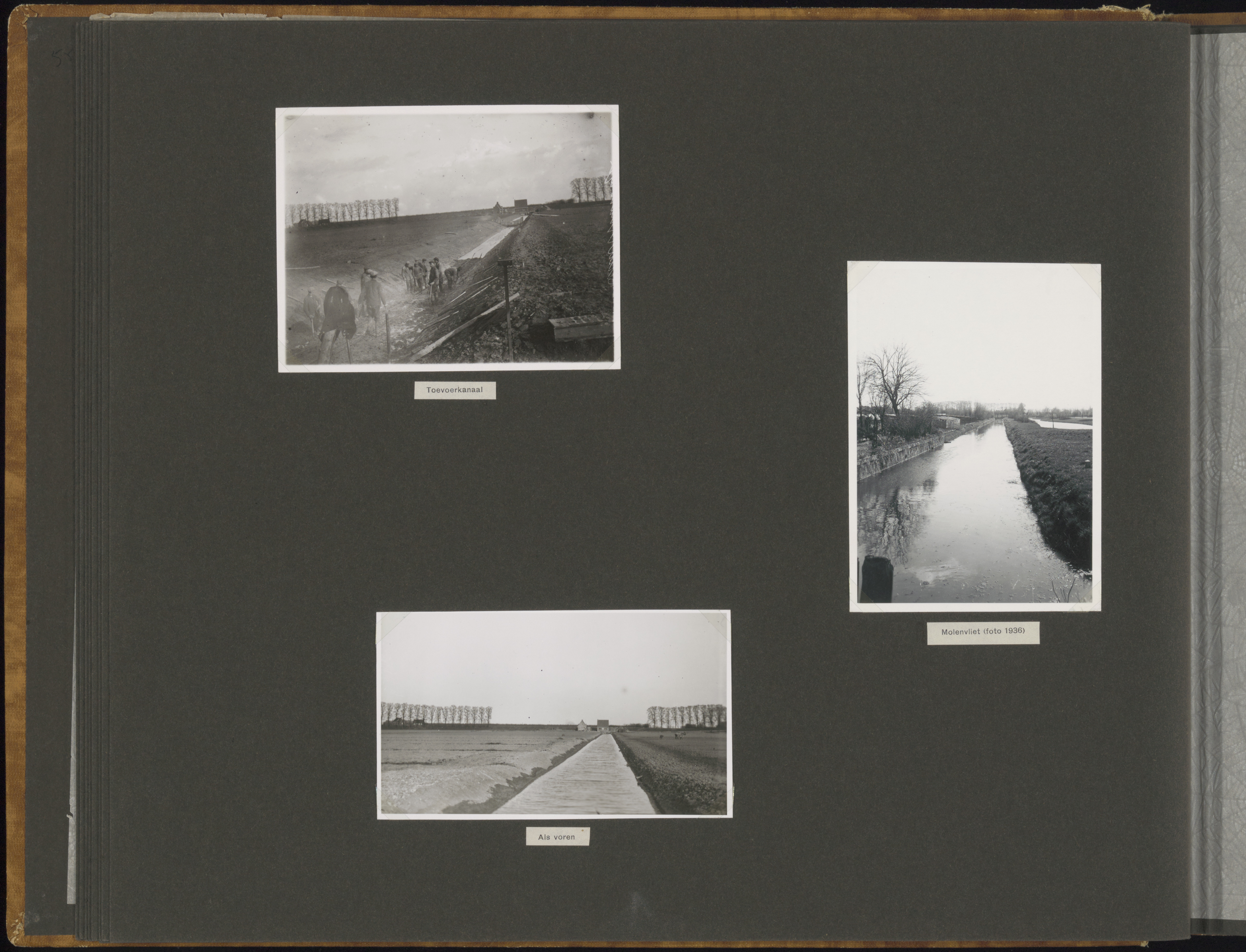 - Linksboven en -onder::Toevoerkanaal vanaf de Provincialeweg richting het W.H. Staring gemaal aan de Zeedijk. Rechts: De Molenvliet vanaf de Reeweg Oost richting de Krommedijk.