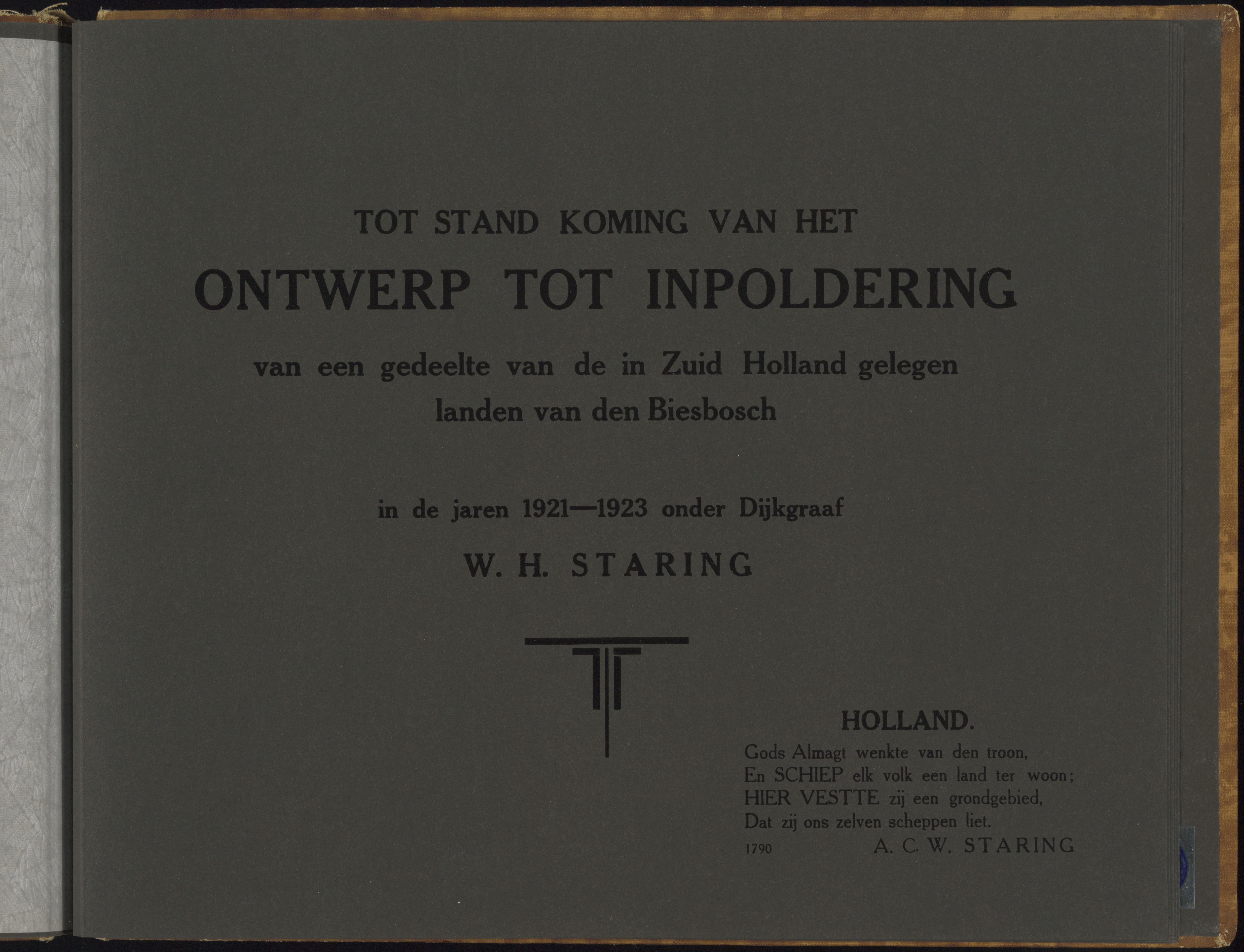 Titelblad in het album over de inpoldering van een gedeelte van de Dordtsche Biesbosch …