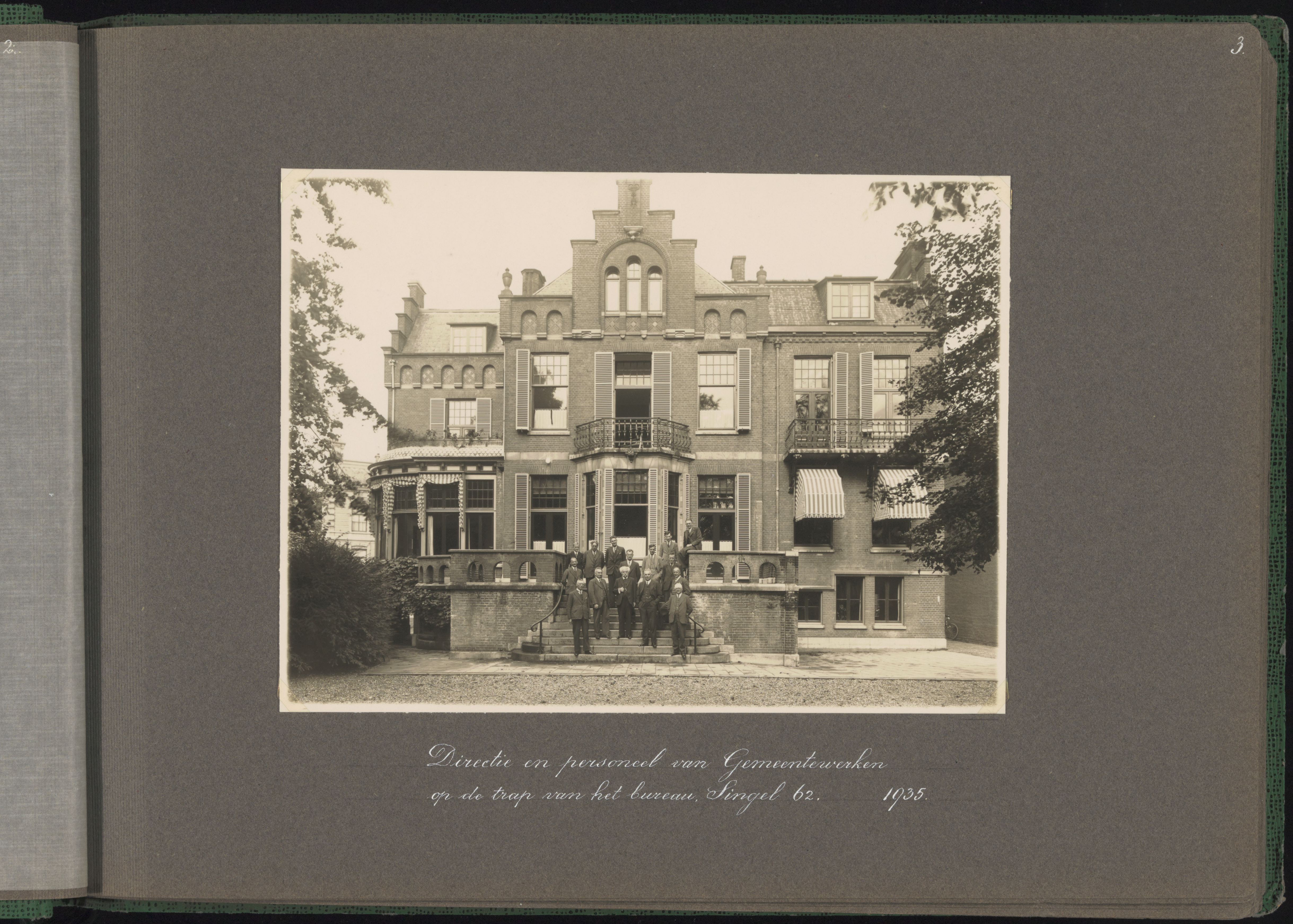 Directie en personeel van Gemeentewerken aan de achterkant van hun kantoor - villa …