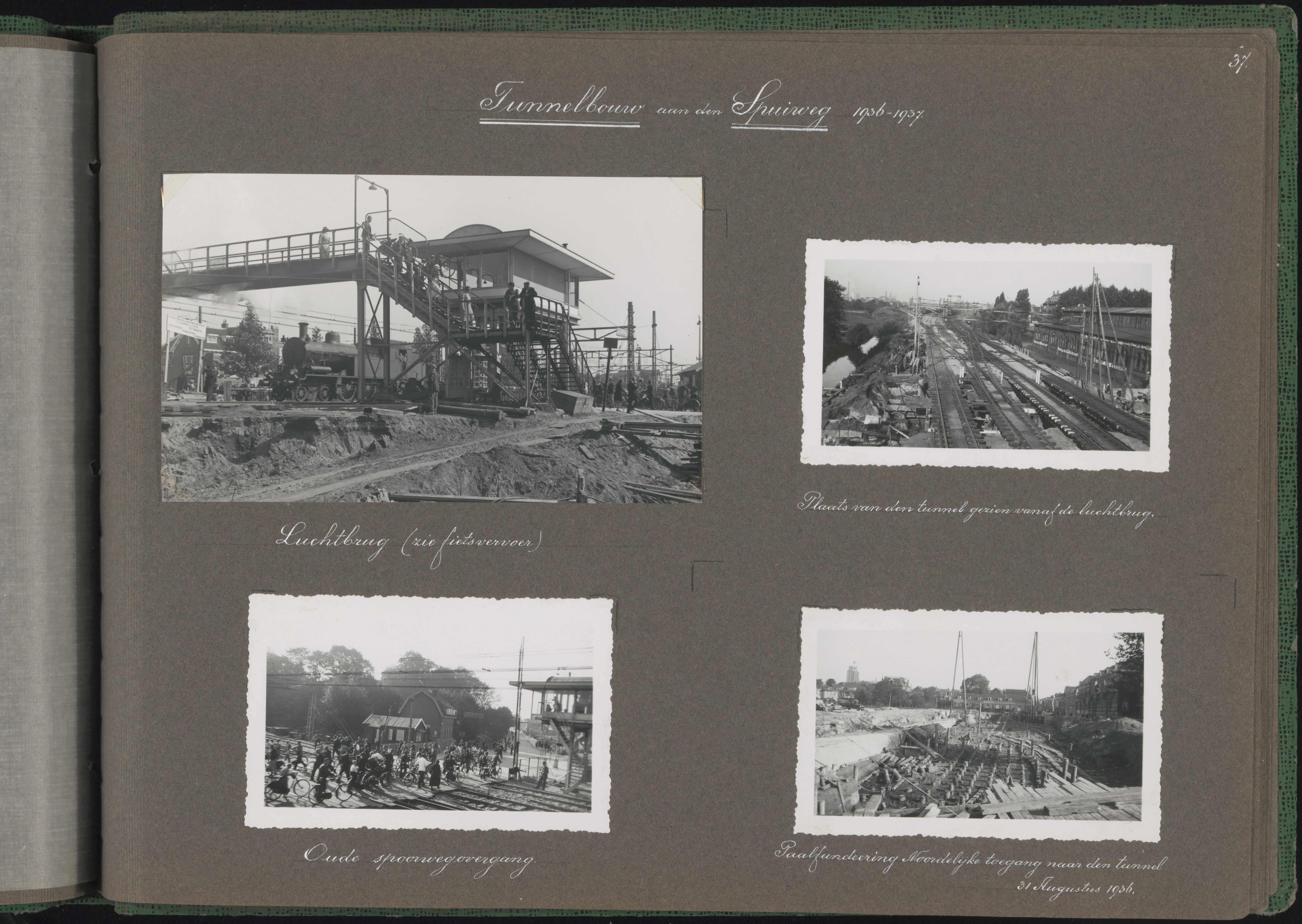 - fietsers heiwerkzaamheden locomotieven overwegen / spoorwegovergangen seinhuizen tunnels voetgangersbruggen wegenbouw