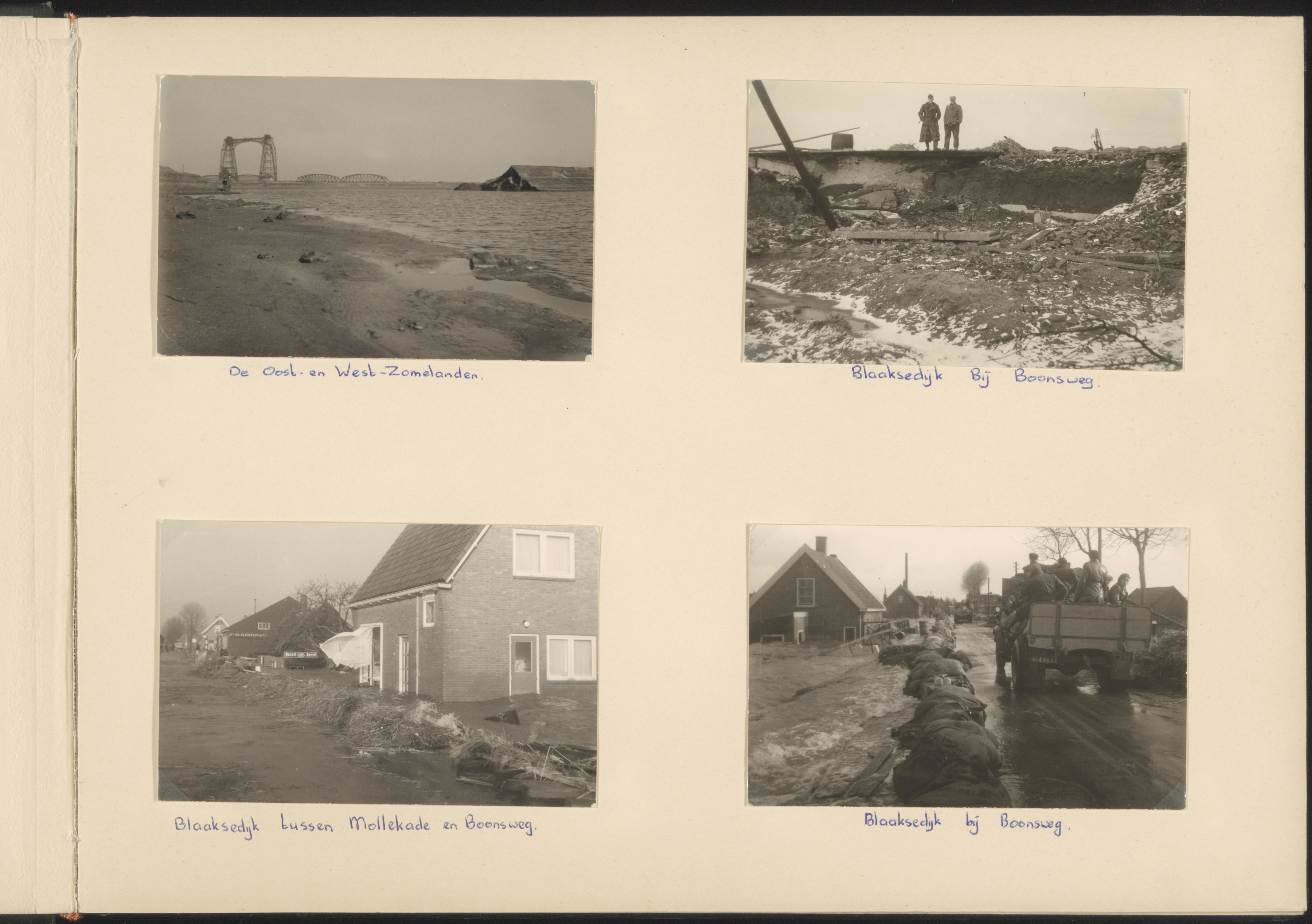 - Watersnood in Blaaksedijk en in polder Oost- en West Zomerlanden. Op de achtergrond de Barendrechtse brug.