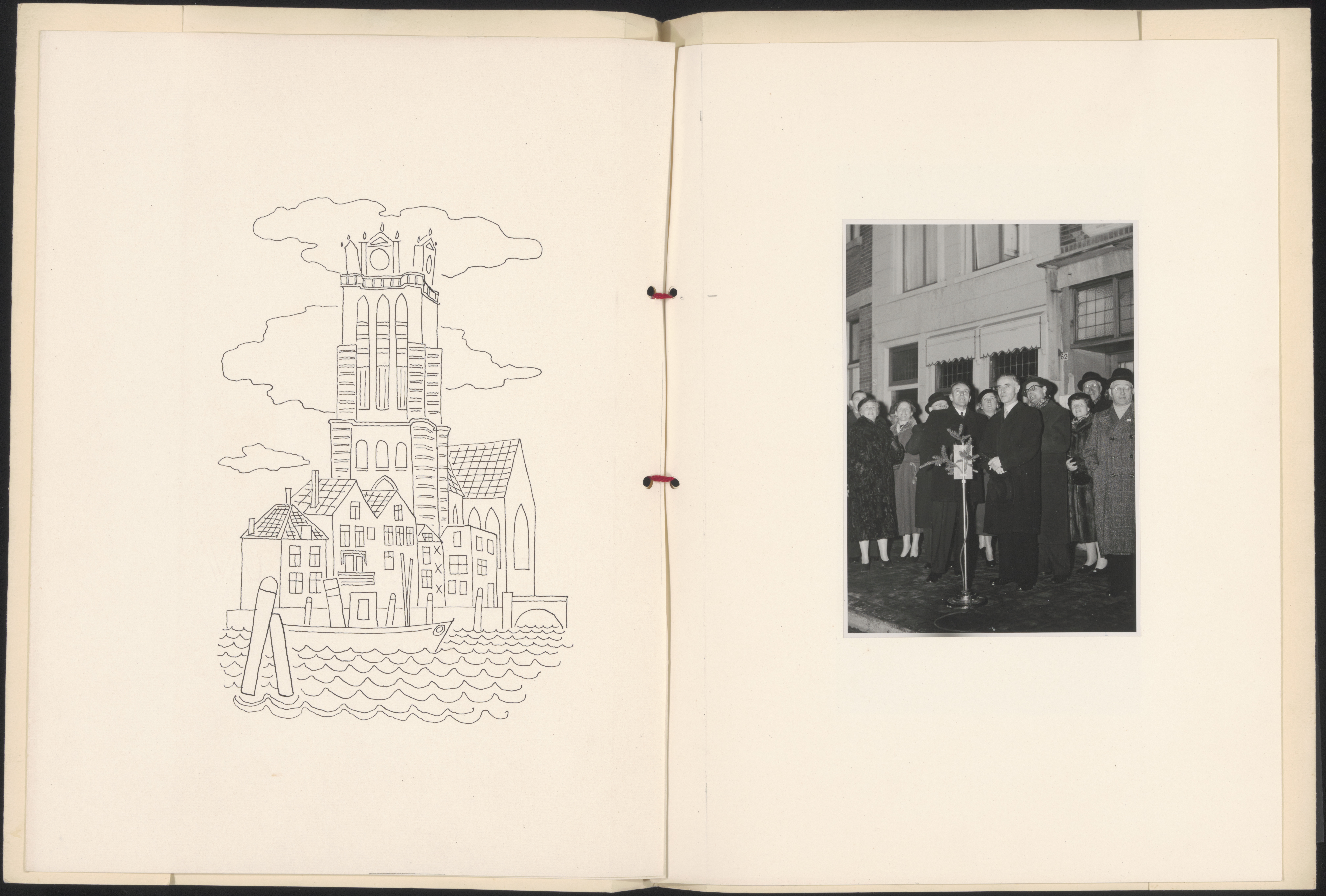 Zinrijke groet van noordelijk broedervolk - Noorwegens consul-generaal ontstak lichten in 13 meter hoge Kerstboom - Plotseling stond voor de duistere gevel van de Spaarbank een van licht tintelend symbool hoog opgericht en dominerend in het hartje van de stad. De firma Anderssen uit Oslo die nauwe relaties heeft met de Dordtse Houthandel M. en A.M. v.d. Kloet zond de boom aan het Dordtse bedrijf en deze droeg hem over aan de Burgerij. De tweehonderd lampen in de kerstboom flitsten aan door een handbeweging van Noorwegens consul-generaal H. Akre. (derde van rechts). Verder van links naar rechts de heer W. Kruys, directeur van de houthandel, mevrouw Van der Dussen, vice- consul H. W. Jacobsen, burgemeester Van der Dussen, de consul van Noorwegen in Dordrecht A. M. de Lange en wethouder Van Es. ****** https://proxy.archieven.nl/46/BBD46ADA4E0641E6AEAF57D86B465FBA