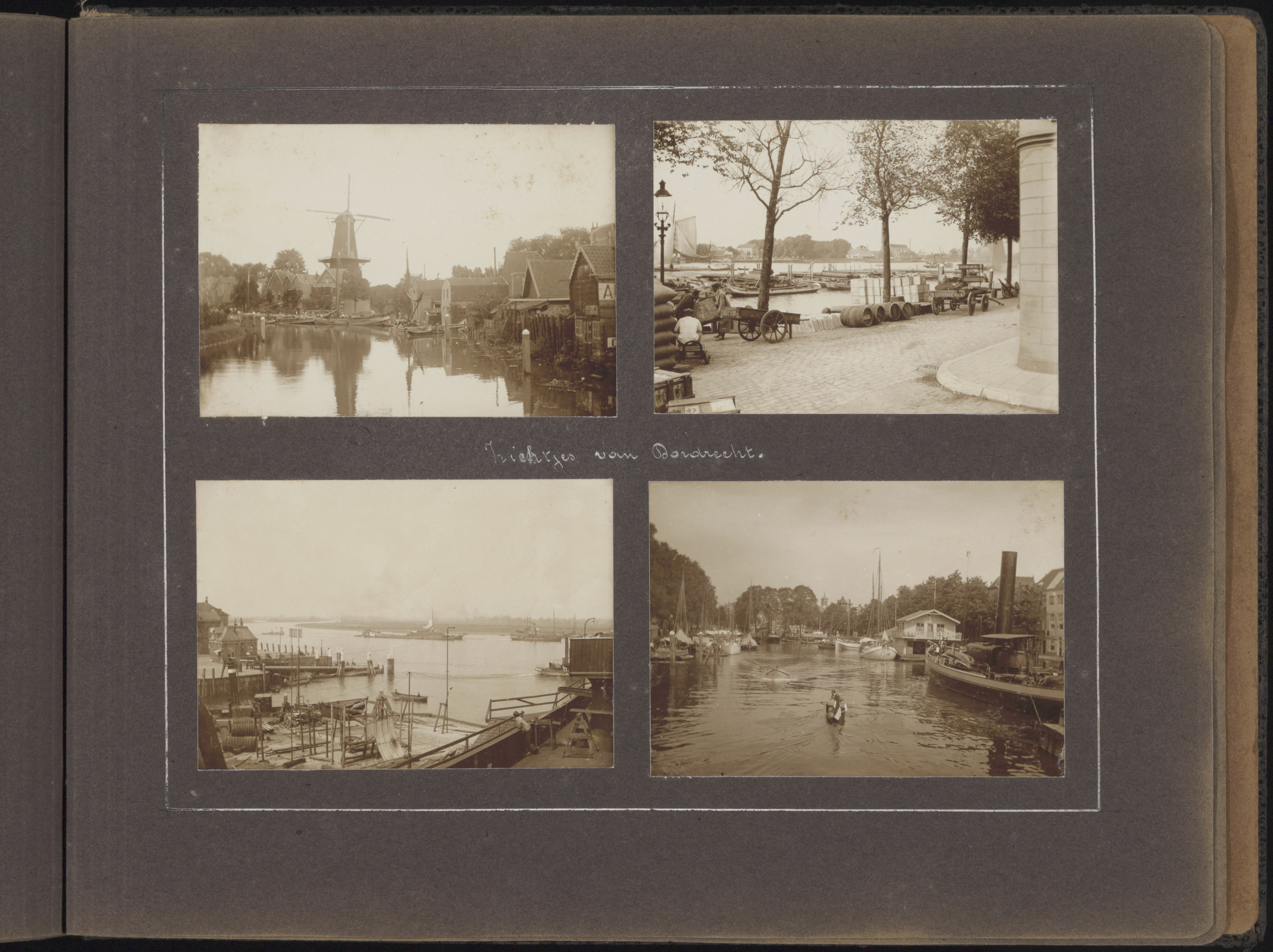 - Linksboven: De Spuihaven vanaf de Johan de Wittbrug richting Vriesebrug. Rechts de Cornelis de Wittstraat met molen De Maagd. Rechtsboven: De Hooikade vanaf de hoek van de Mazelaarsstraat. Linksonder: Het Papendrechts veer gezien over de Riekijkshaven naar het westen. Rechtsonder: De Nieuwe Haven vanaf de Lange IJzerenbrug richting Aardappelmarkt. Rechts het botenhuis van de roei- en zeilvereniging aan de Knolhaven.