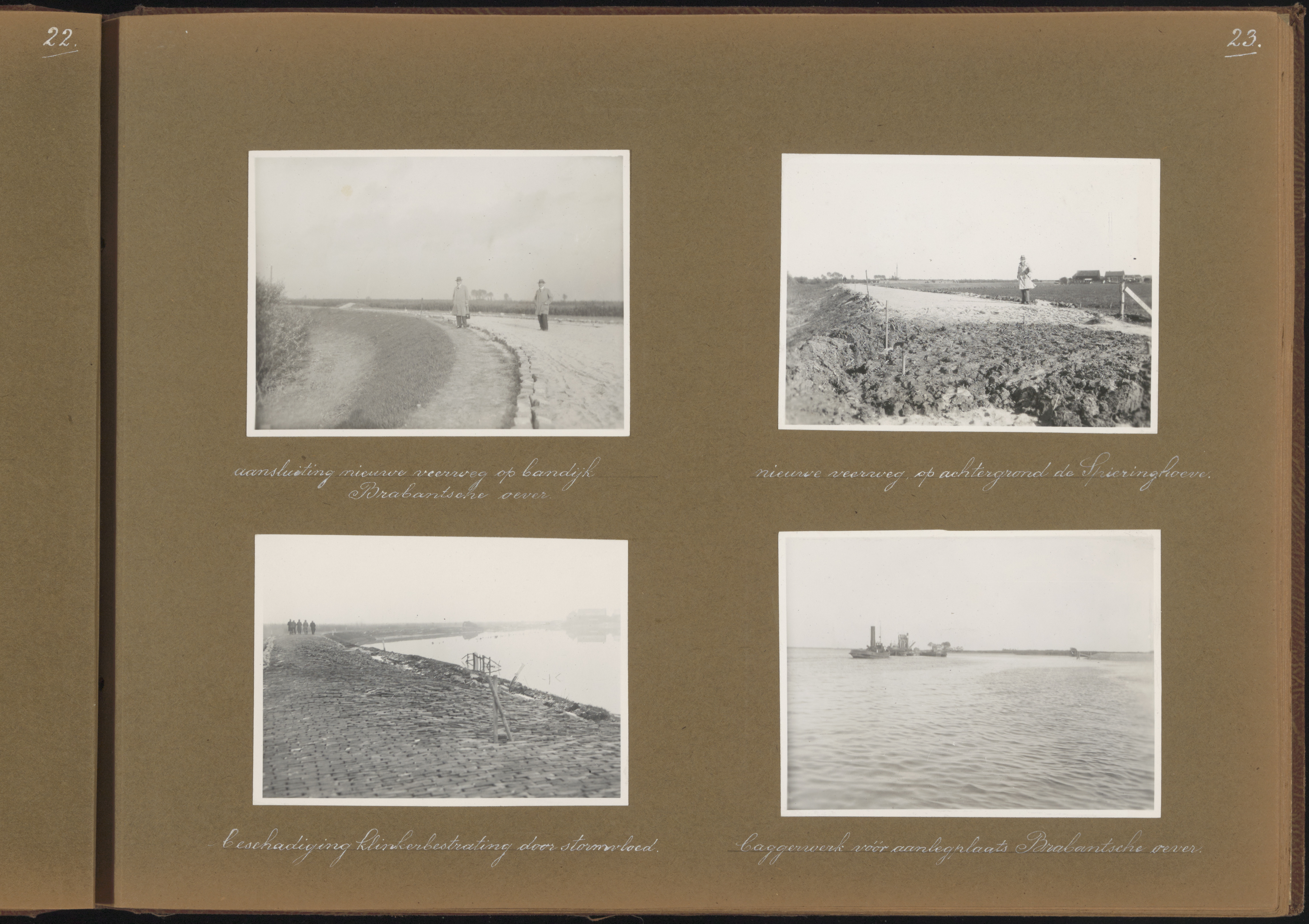 - Stormschade door een novemberstorm aan de Veerweg op de Branbantse oever van het veer aan de Kop van 't Land en het herstel van deze weg.
