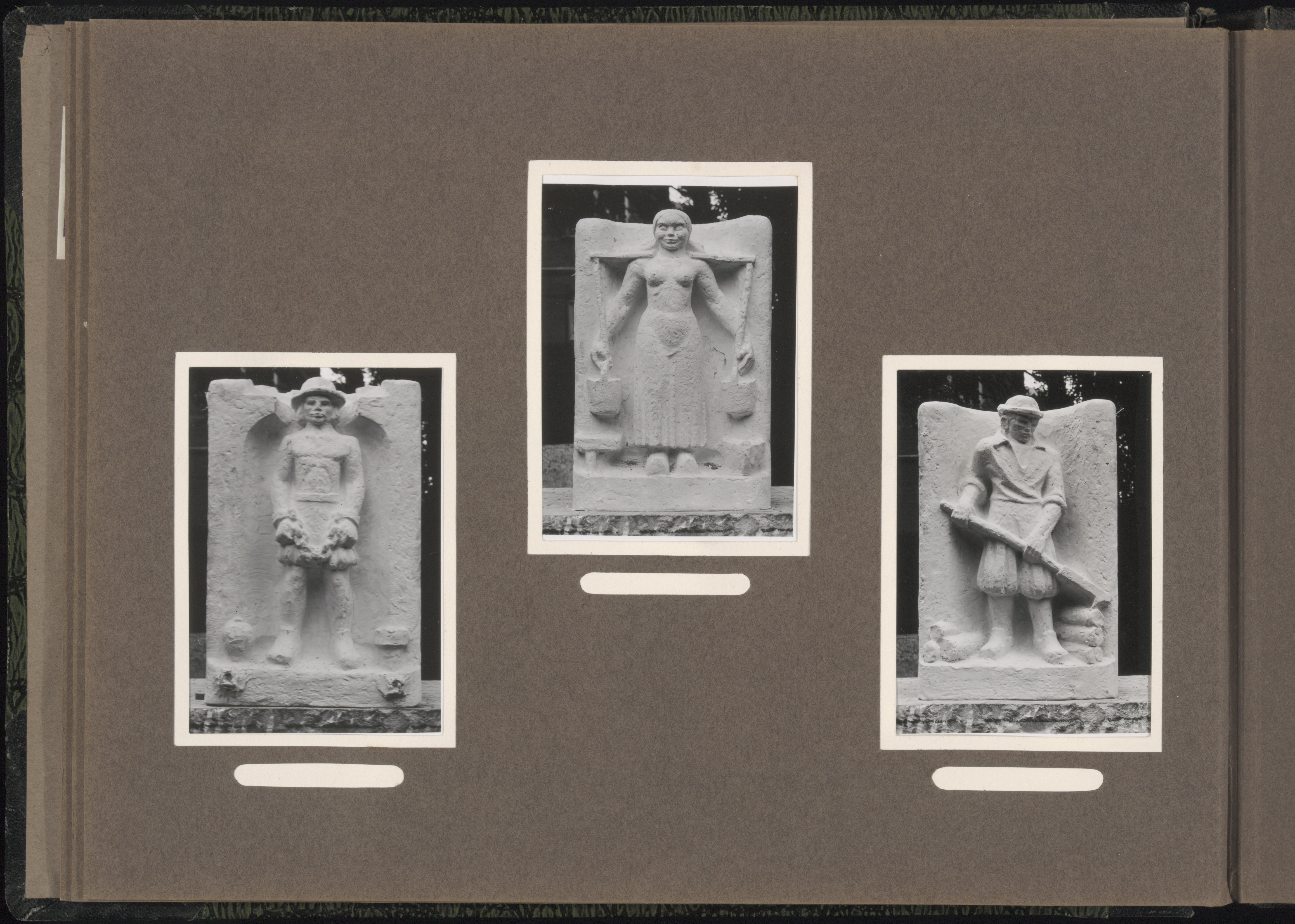 Drie van de vier beeldjes die op de nieuwe Leuvebrug in 1937 zijn aangebracht t.w. de …