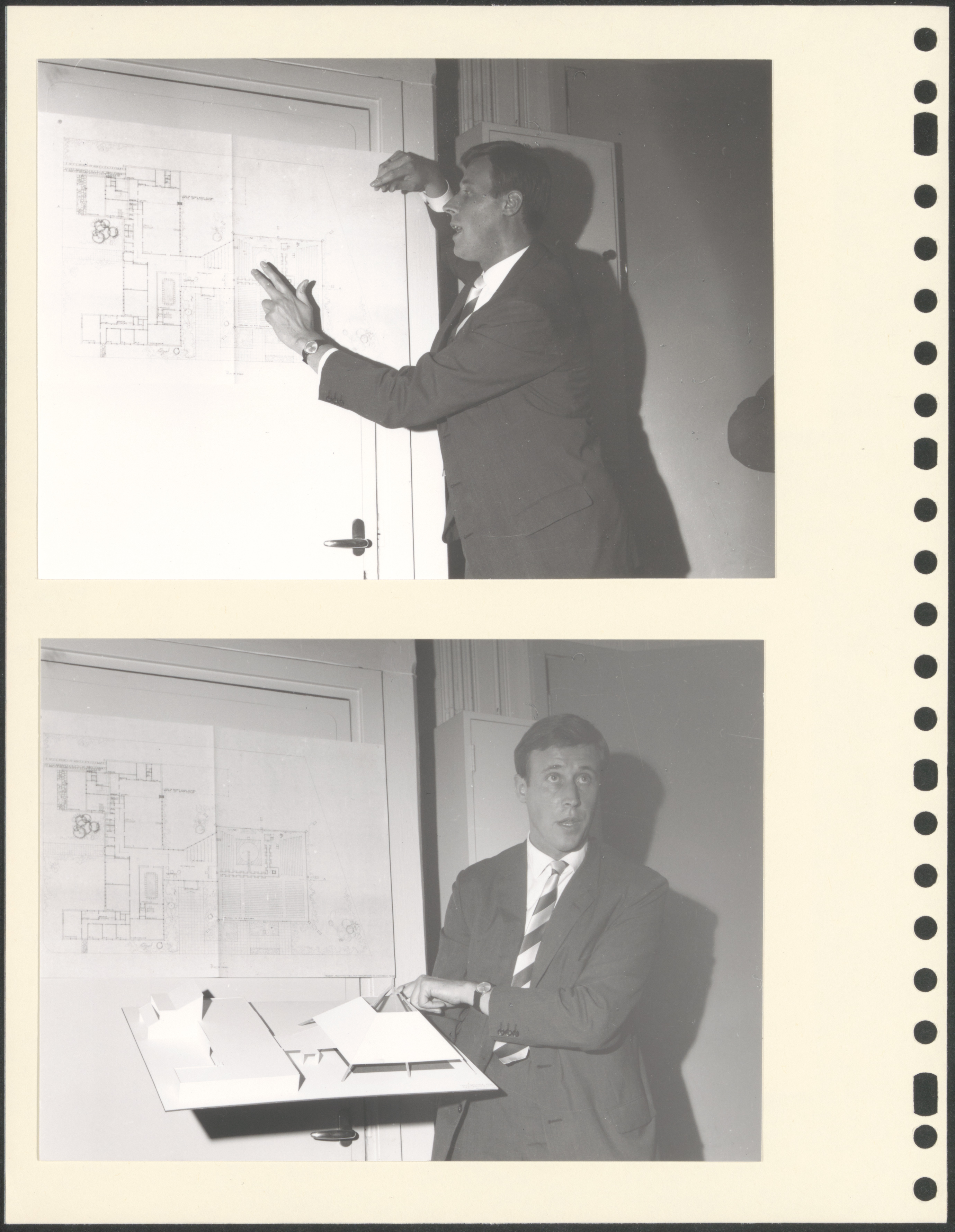 Architect Wim Quist presenteert het eerste schetsontwerp aan de kerkeraad van de …