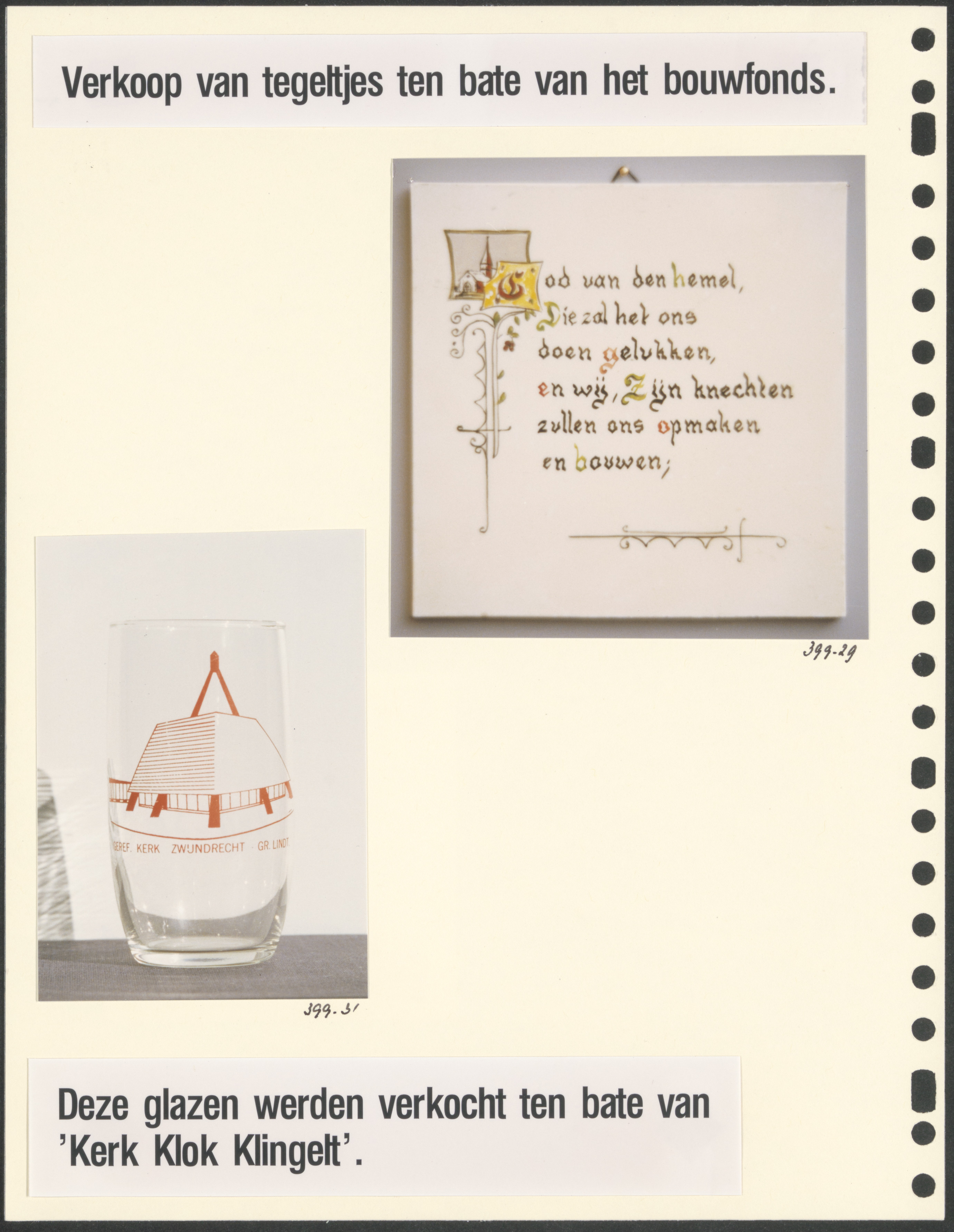 - Verkoop van glazen en tegeltjes voor de bouw van de Ichtuskerk aan de Frits Vogelstraat in Zwijndrecht.