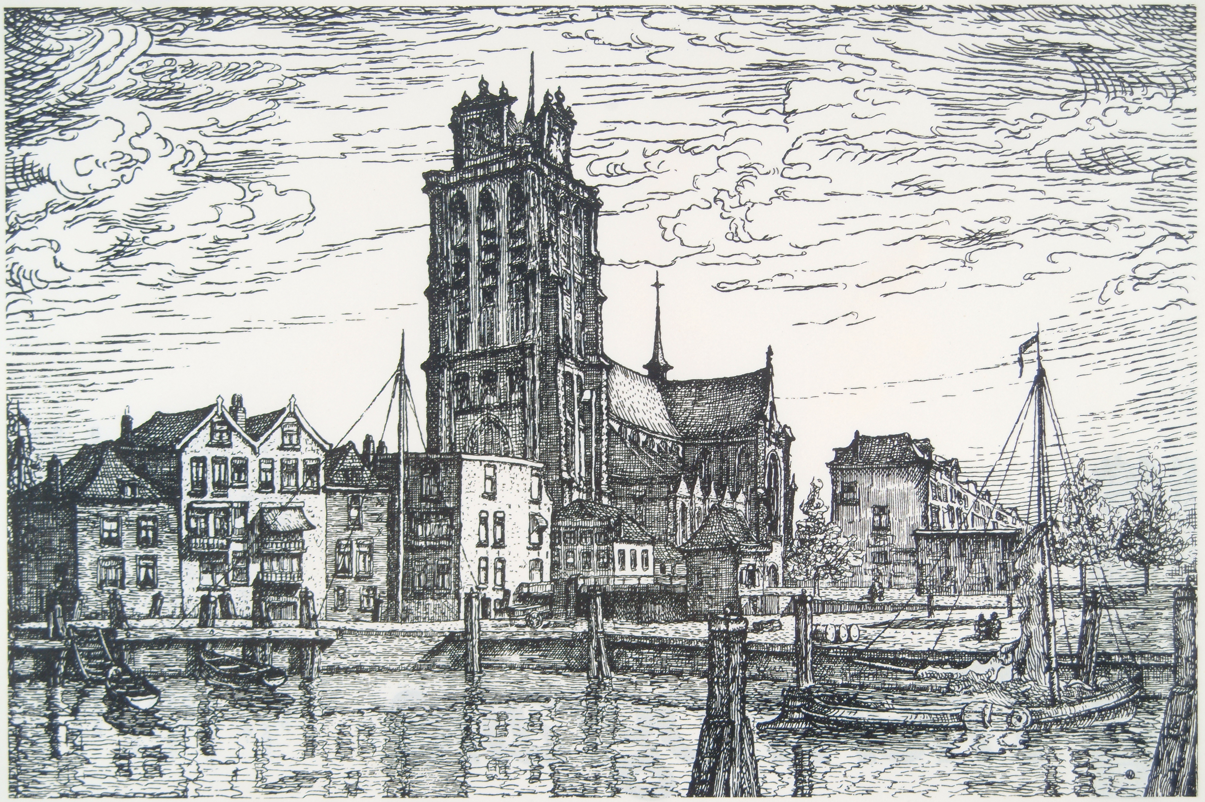 Gezicht op de Leuvehaven en de Grote Kerk, ca 1950.