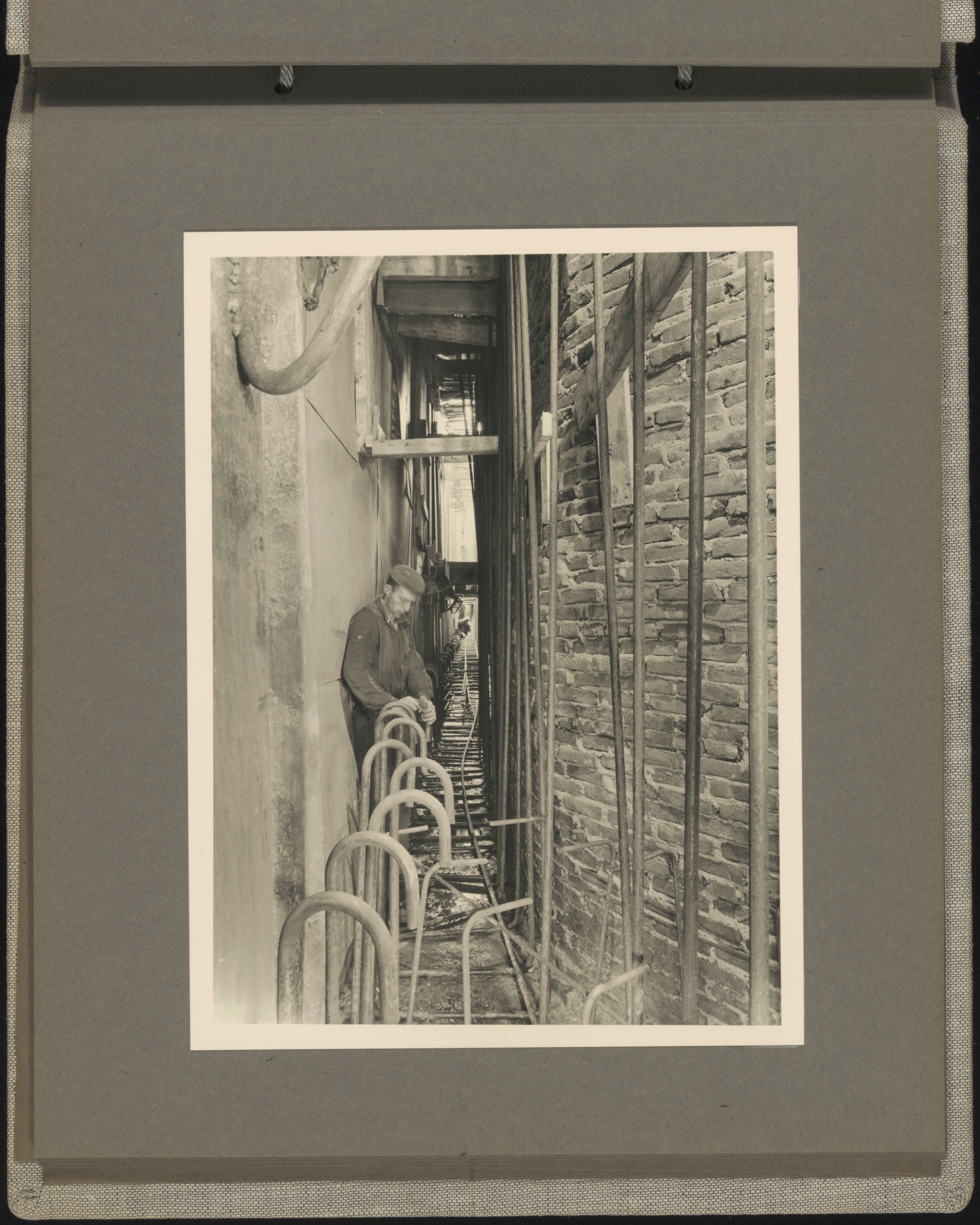 Inbrengen van de wapening bij het herstel van de fundering van de Grotekerkstoren.