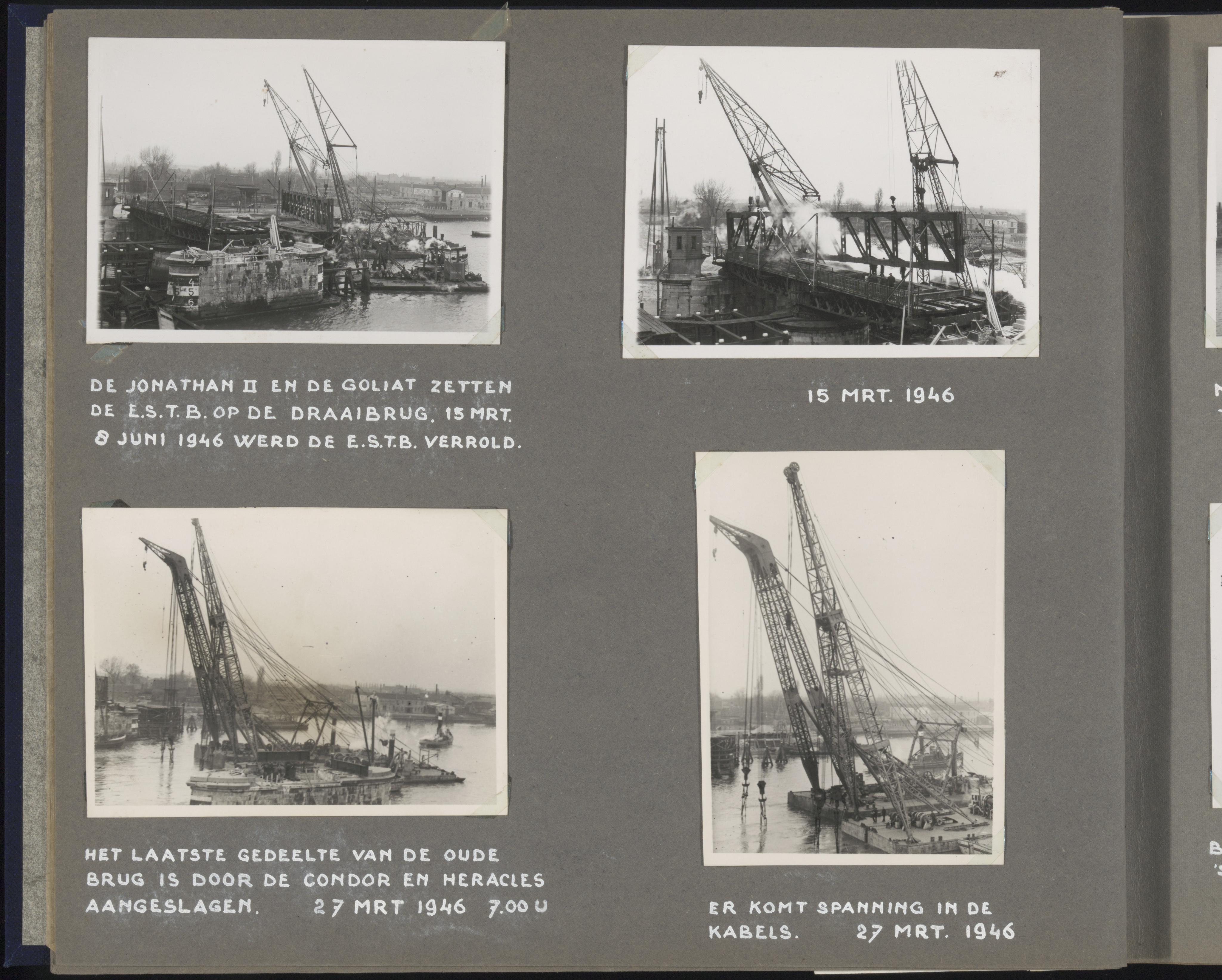 Herstel van de spoorbrug over de Oude Maas tussen Zwijndrecht en Dordrecht aug.1945-Juli 1946.