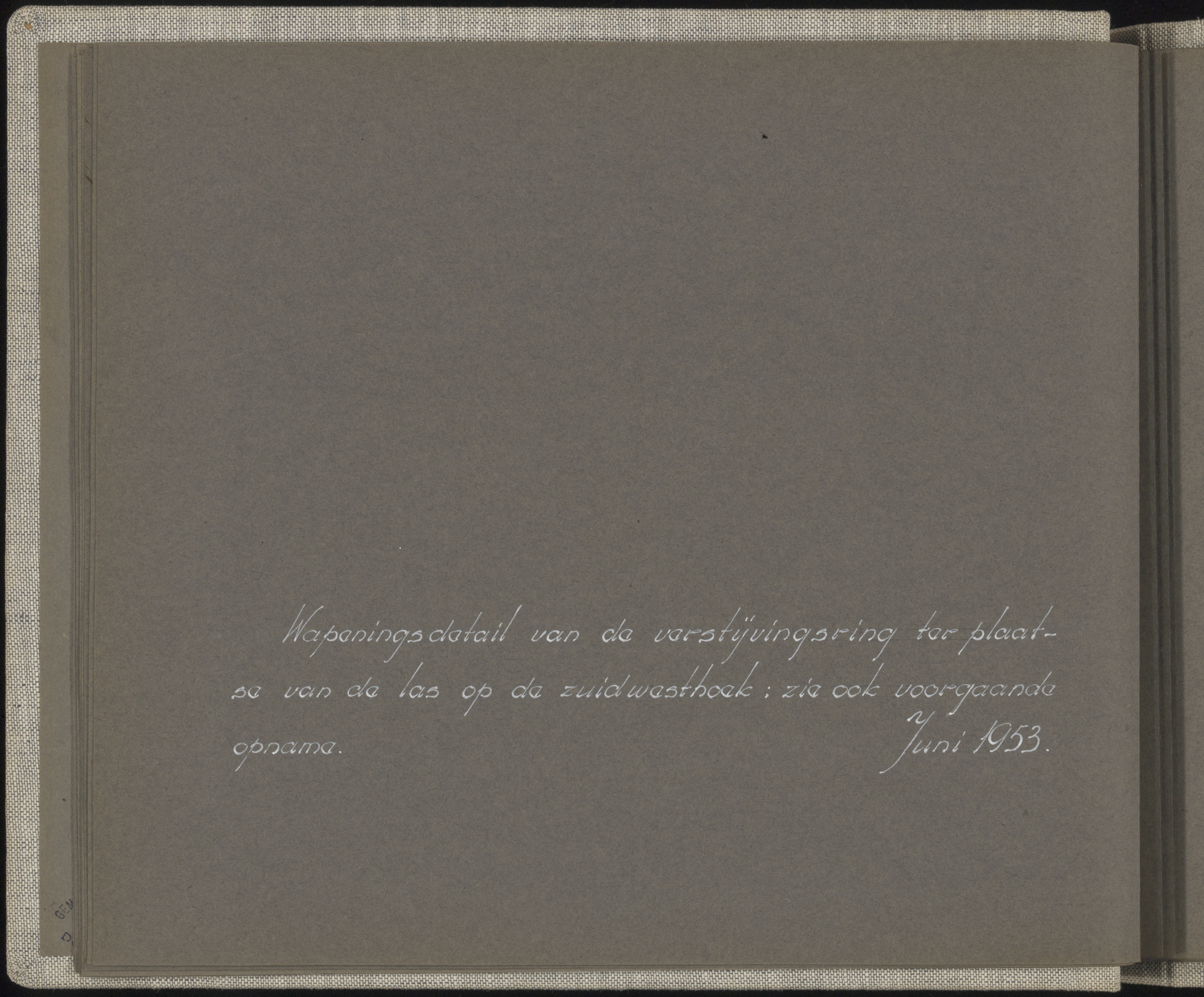 Wapeningsdetail van de verstevigingsring Zuidwesthoek juni 1953.