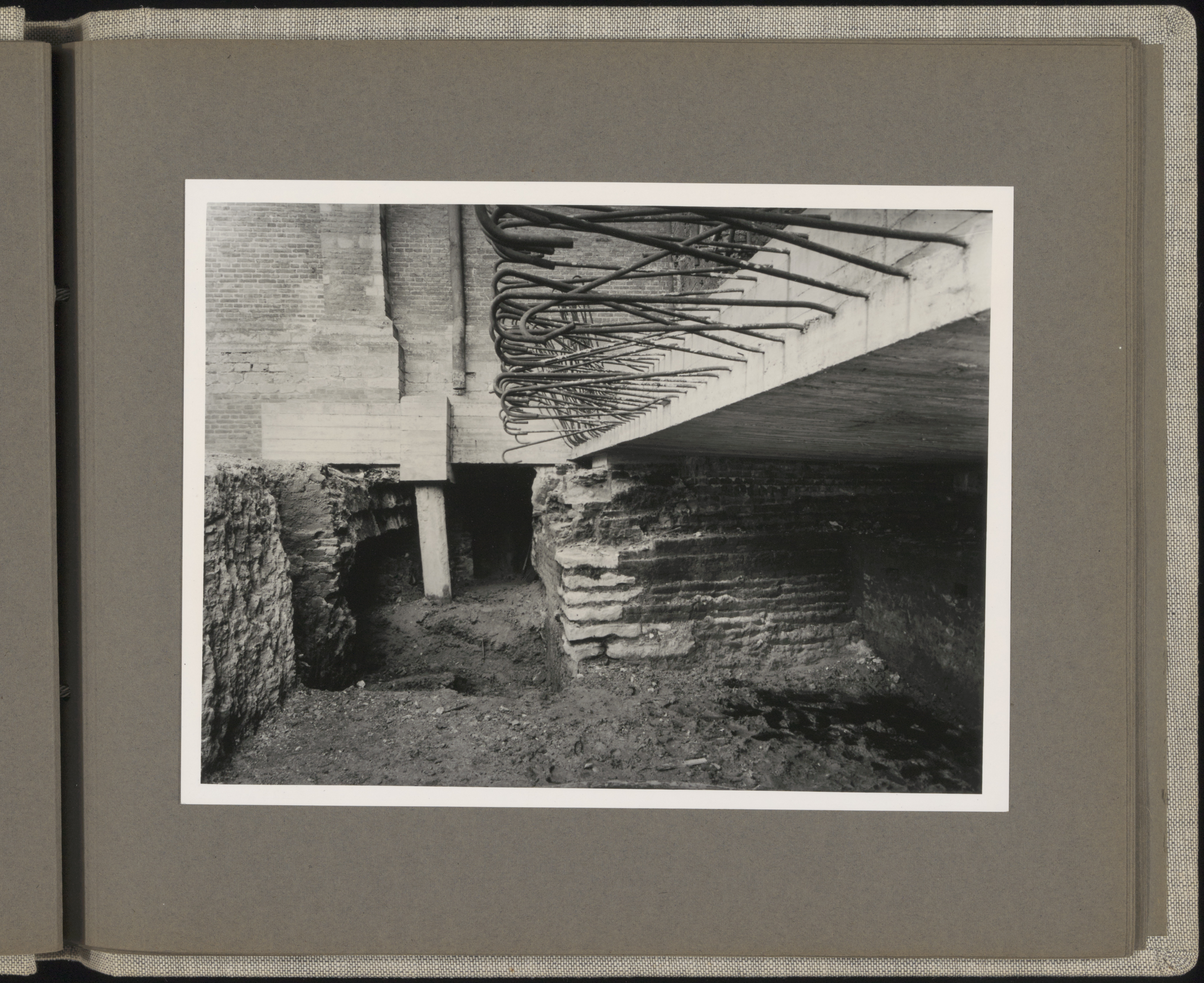 Verstijvingsring en hulpconstructie ter ondersteuning eindmuur noordelijke zijbeuk. juni 1953.