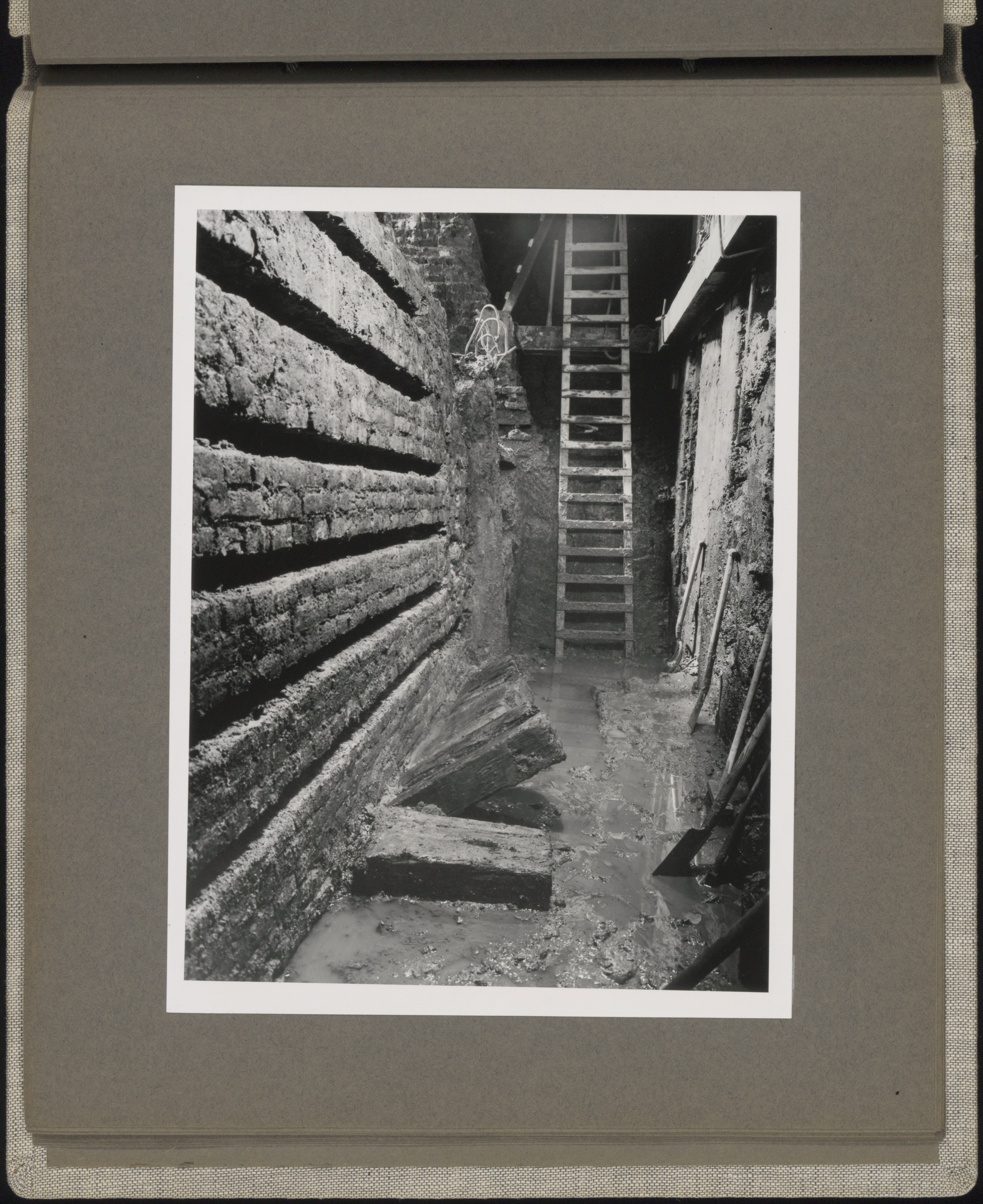 Fundament Noordoost zijde ontgraven. juni 1953.