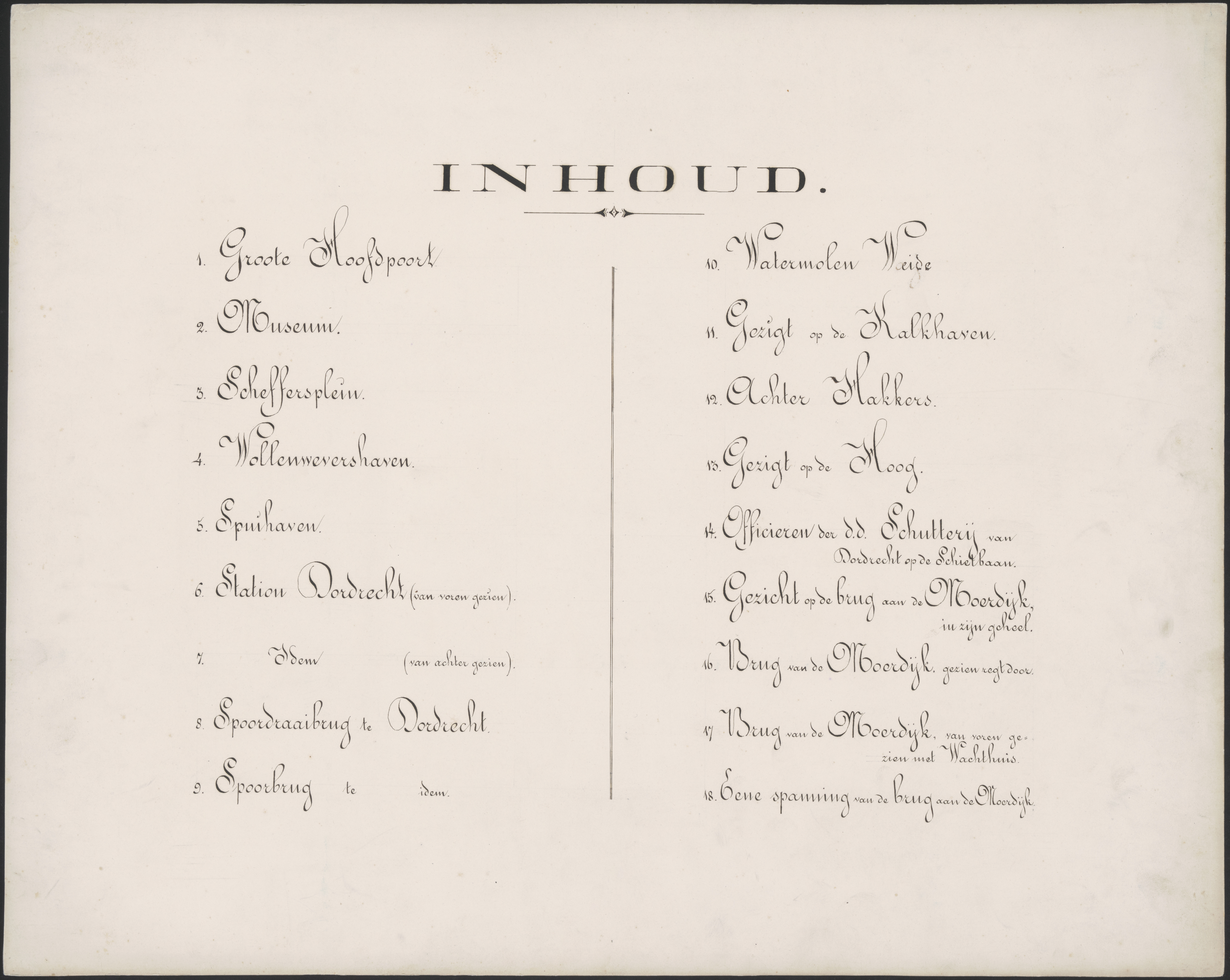 - Inhoudsopgave van album met foto's in en om Dordrecht van J.J. Hameter.